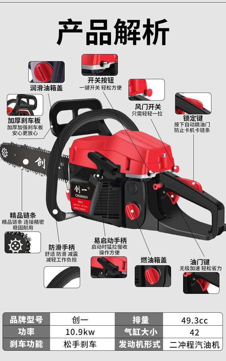 Motosserra Americana de Derrubada Motosserra de Alta Potência Economizadora de Combustível Motosserra a Gasolina Doméstica de Corrente de Dois Tempos Mochila para Corte de Árvores