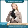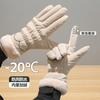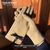 Luvas de pele de carneiro com tela sensível ao toque de inverno e veludo acolchoado para mulheres, duas nervuras, luvas quentes da moda para outono e inverno