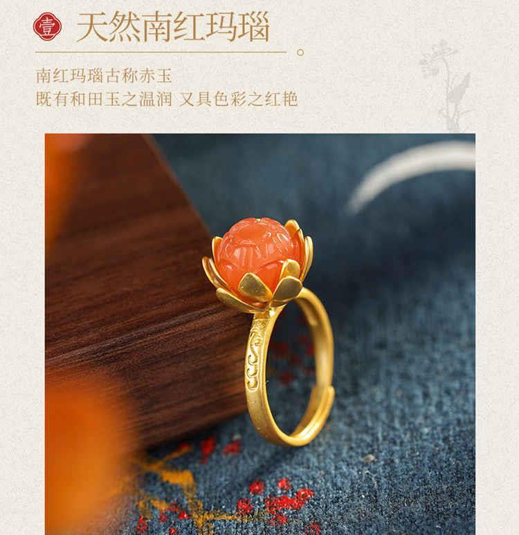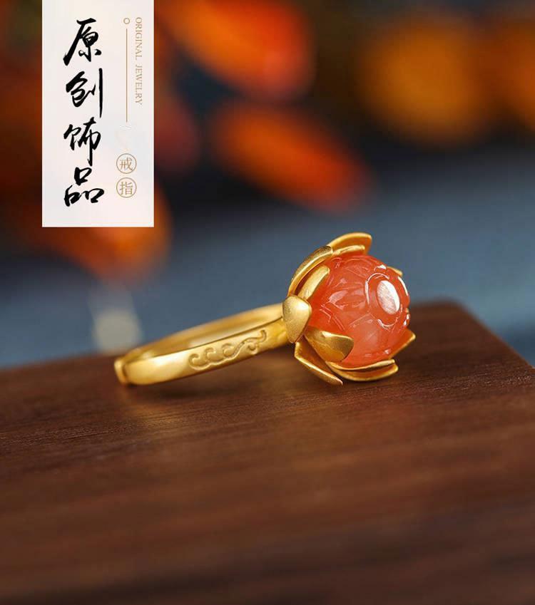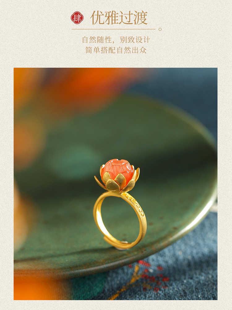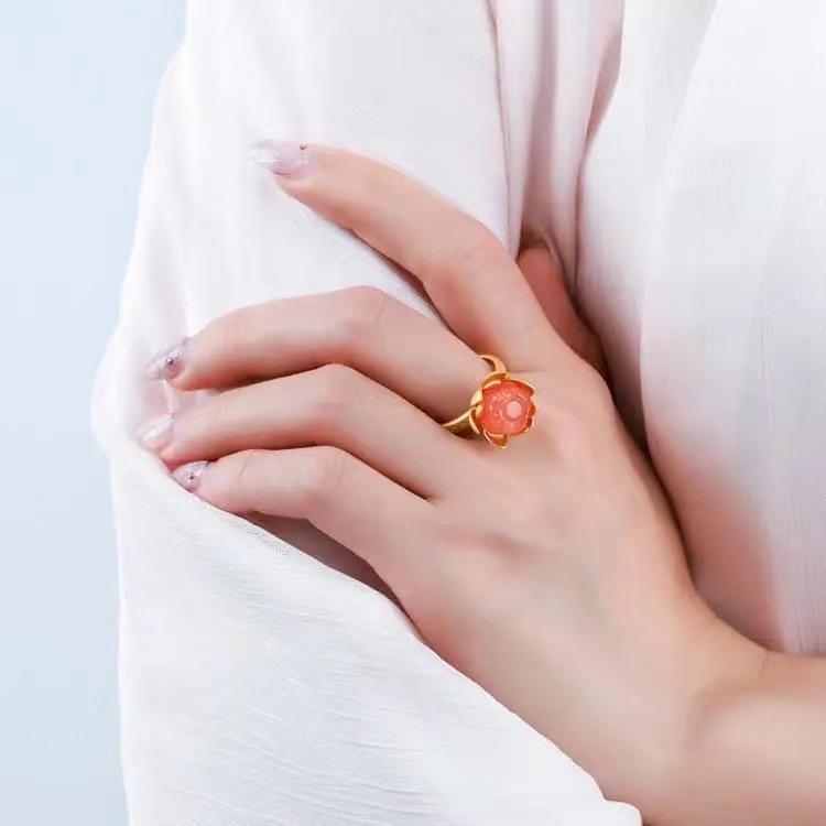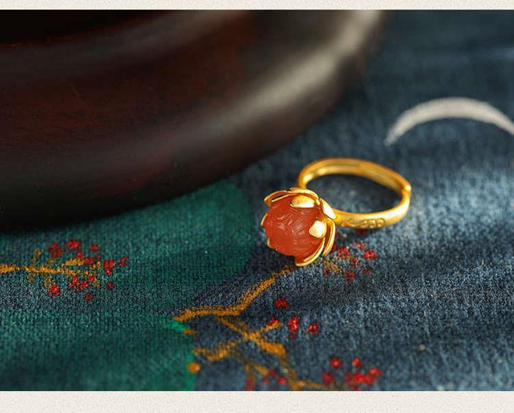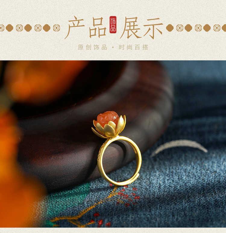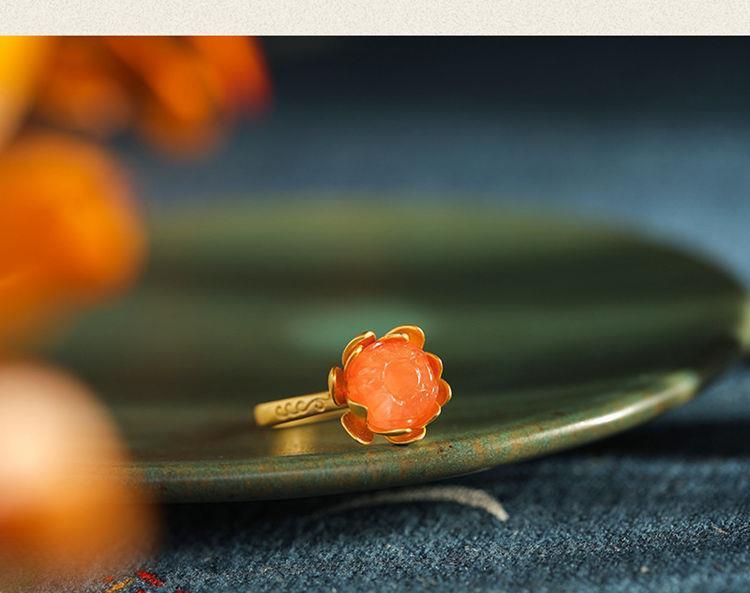 Novo Anel Anel de Ágata Vermelha Natural Anel de Flor Estilo Corte Joias Vintage Joias Femininas