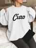 Moletom com Estampa de Letras, Casual de Gola Redonda de Manga Comprida Feminino