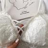 Nova moda curta pequena estilingue linda parte traseira tubo top externo base colete sexy renda cruzada peito envolvente