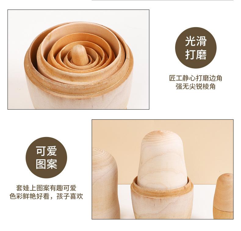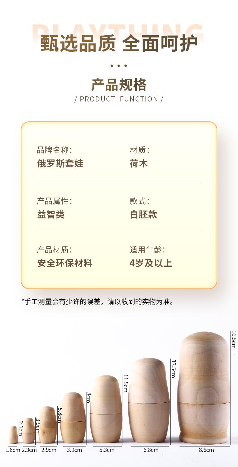 Boneca de madeira branca em branco pintada à mão, boneca russa de sete camadas, manual de estudante, boneca faça você mesmo, brinquedos educativos para crianças