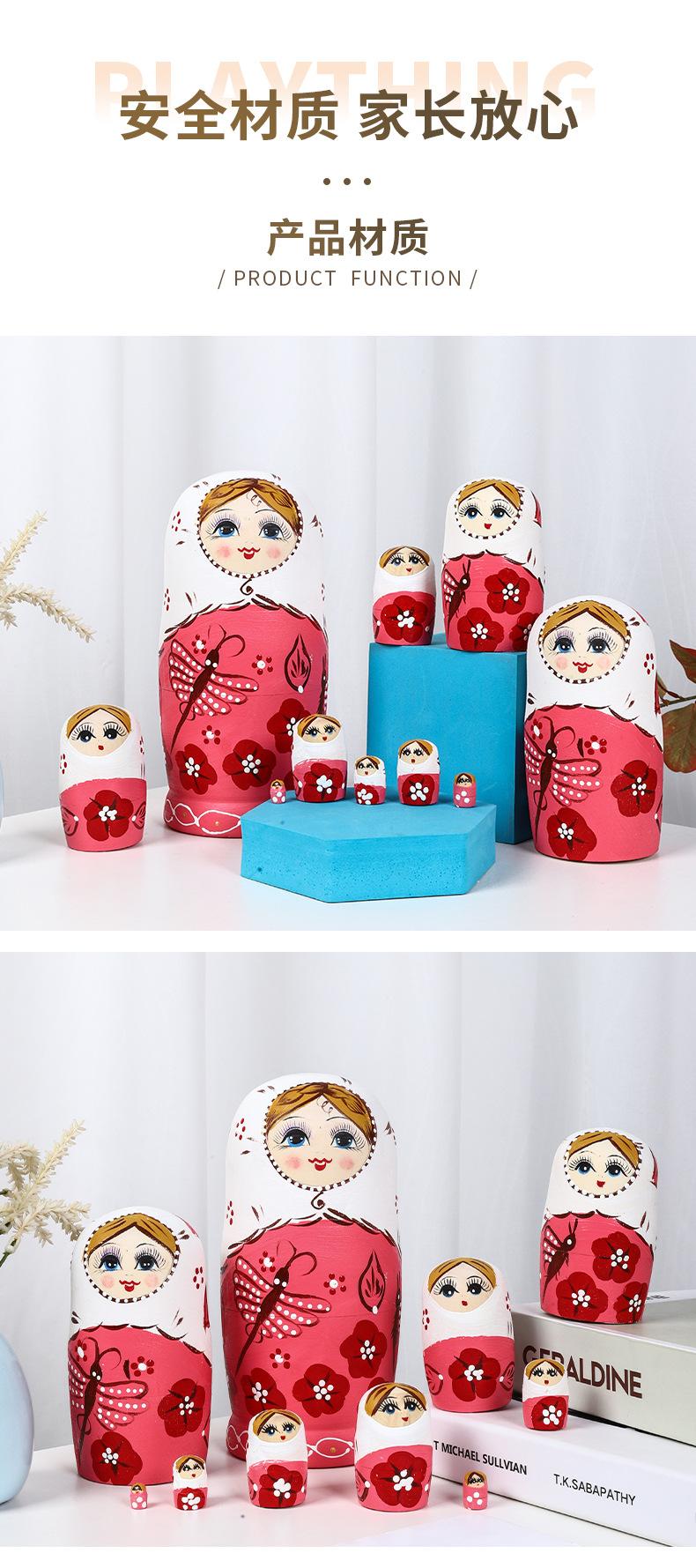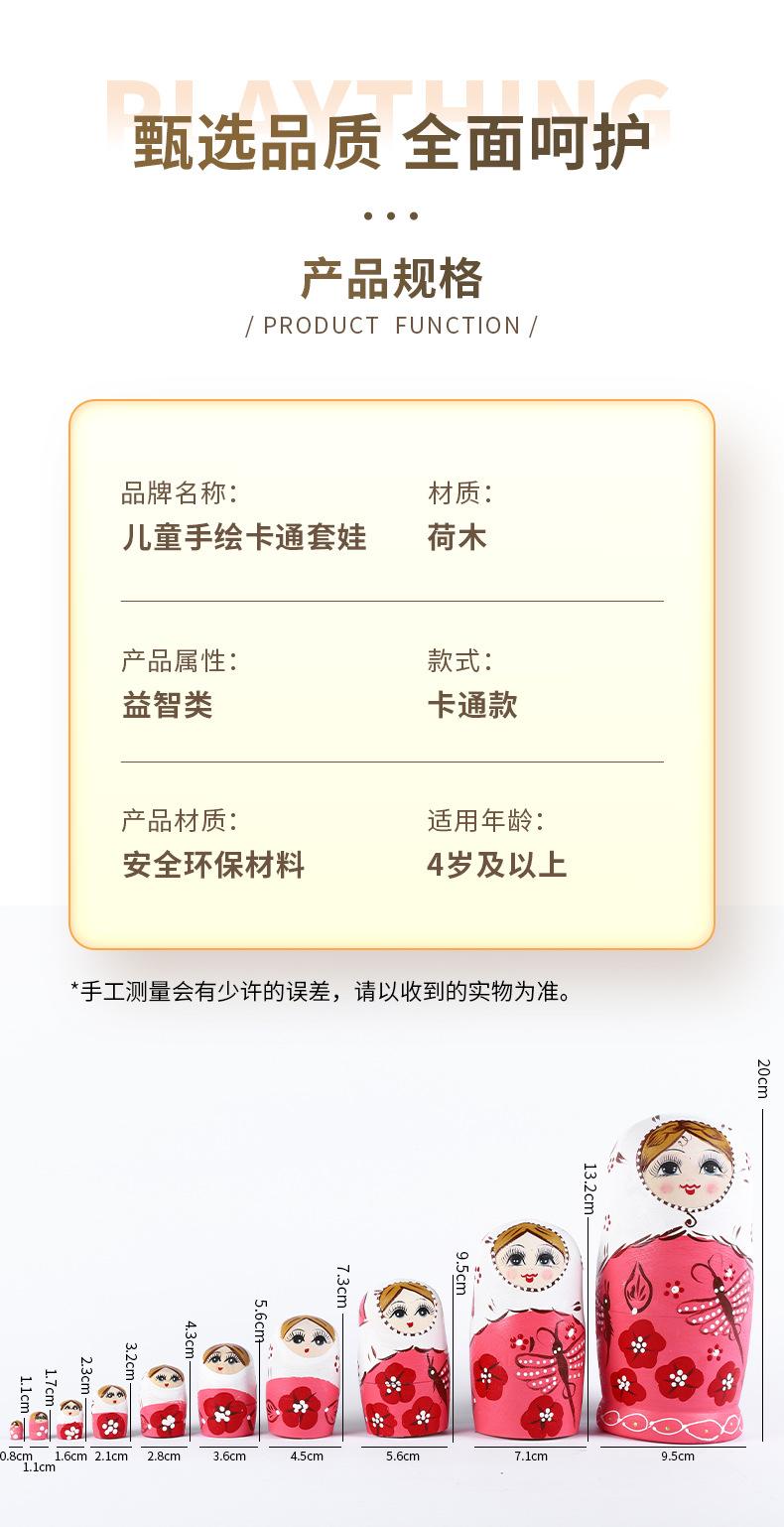 Boneca russa de dez camadas, boneca de desenho animado pintada à mão para crianças, brinquedos educativos para crianças, artesanato em madeira, decoração de boneca
