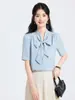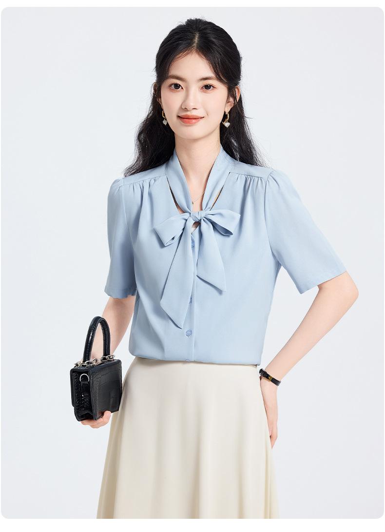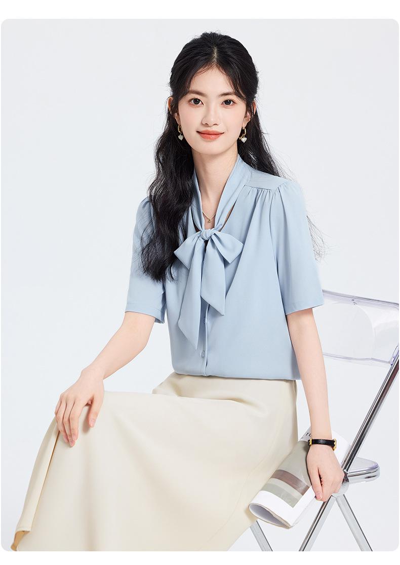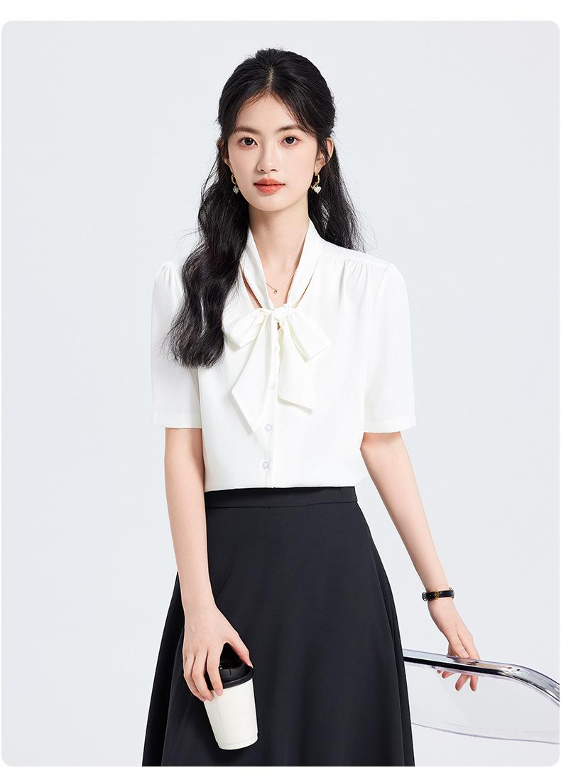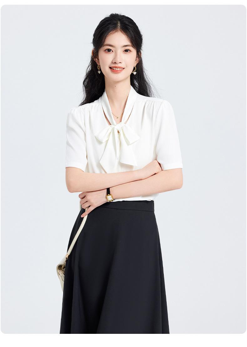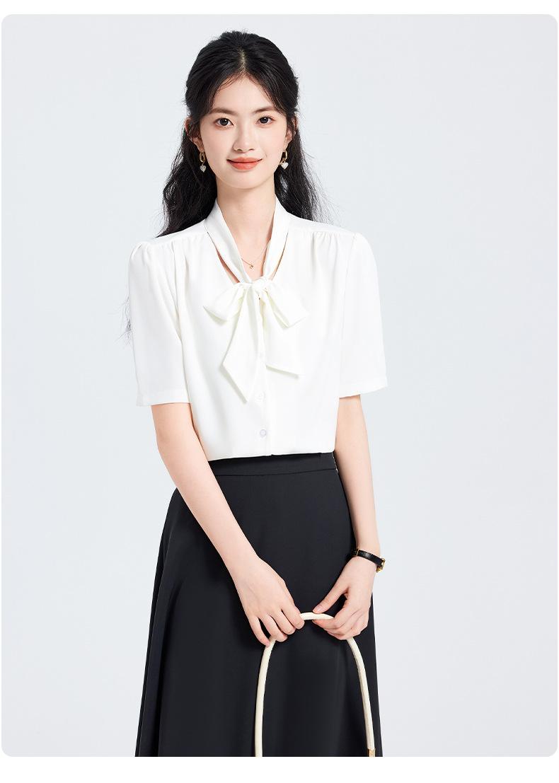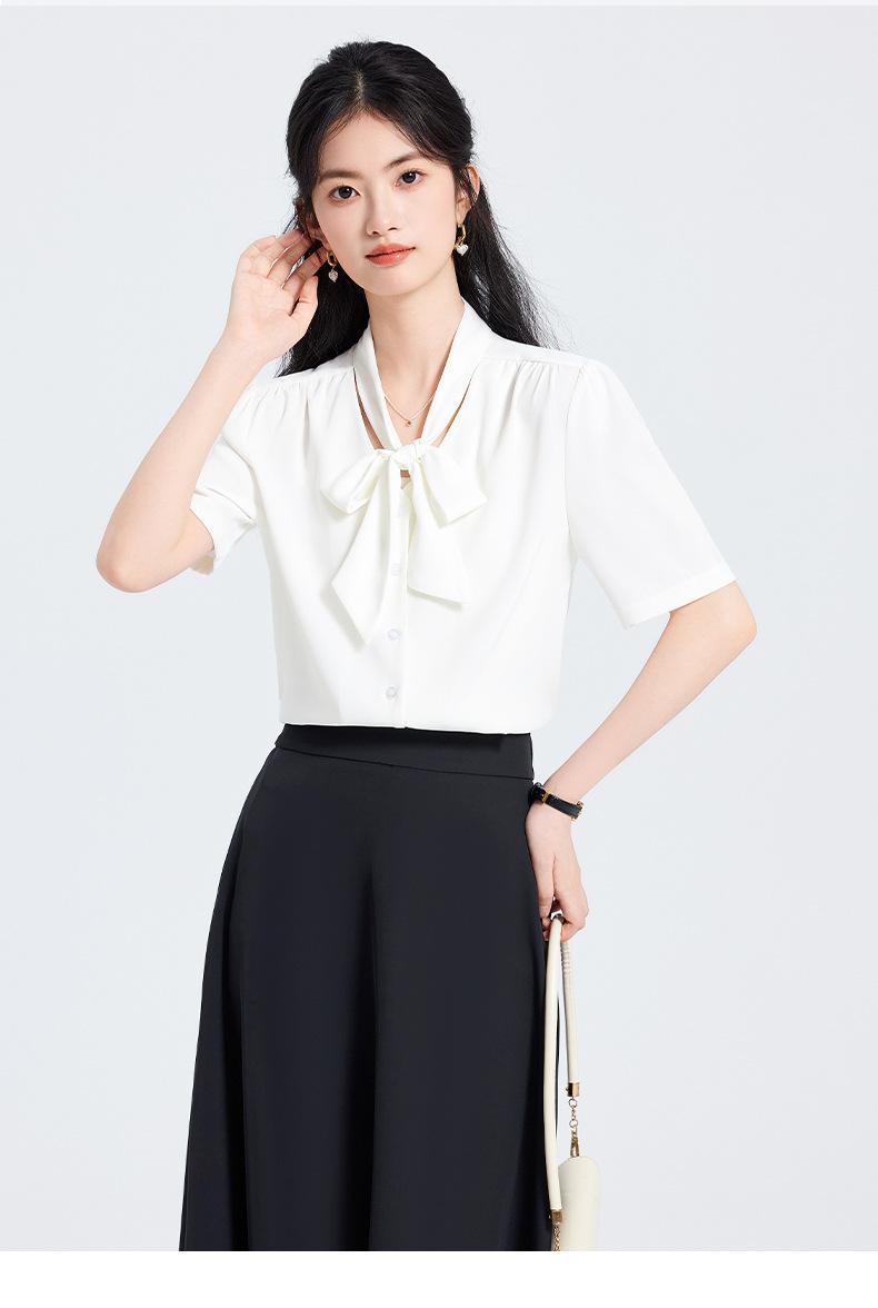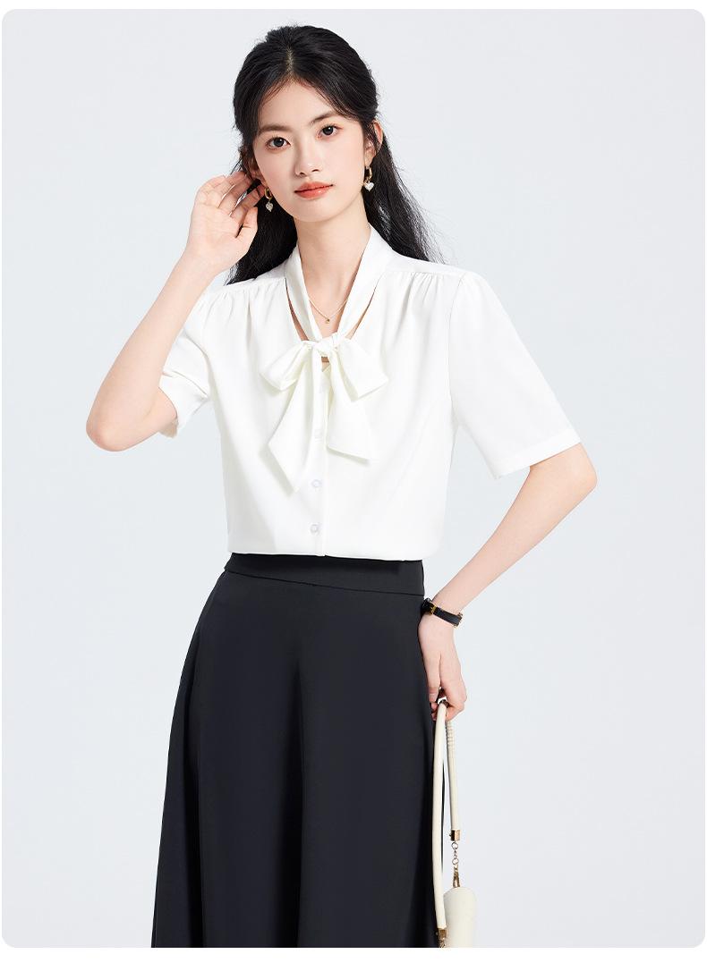 Camisa branca feminina primavera e outono, novo design de moda, blusa com laço, verão, fina, para negócios, camisa de chiffon