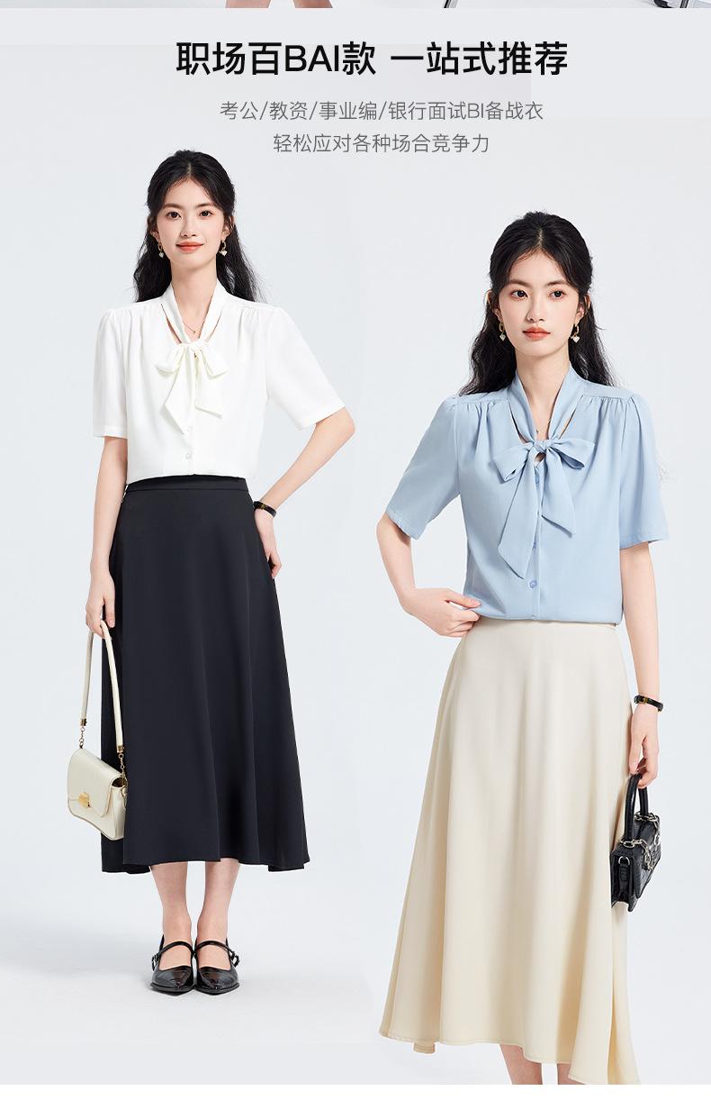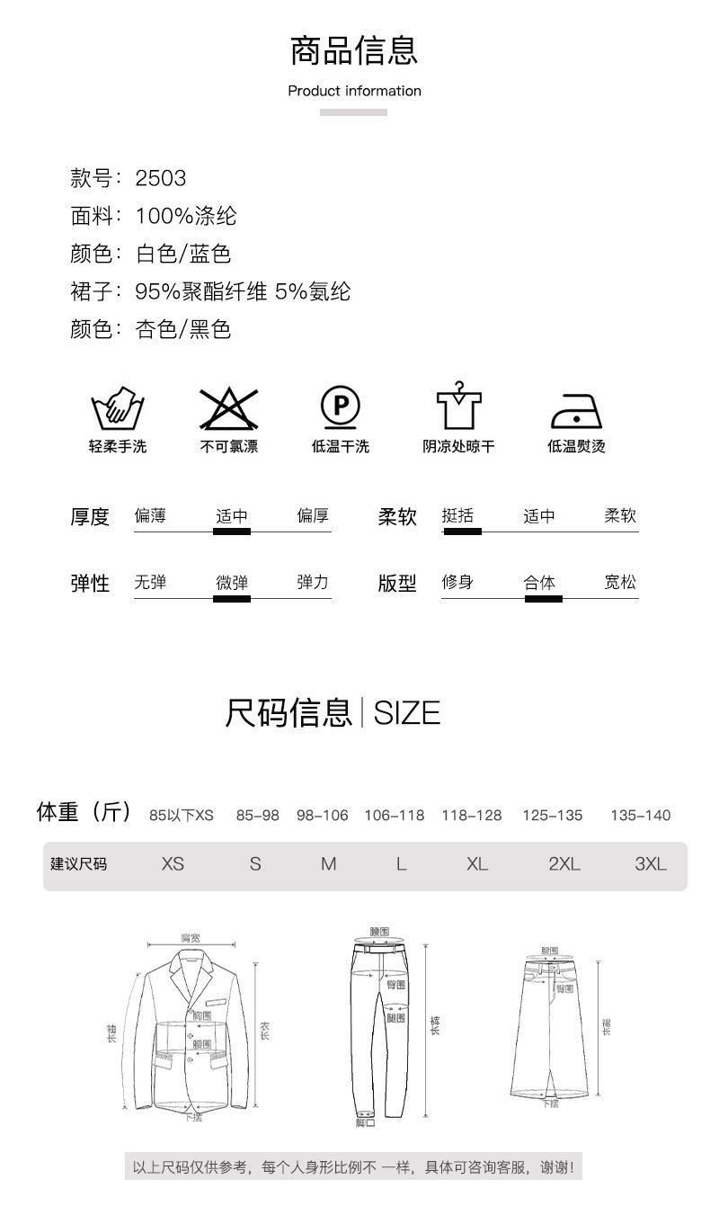 Blue single shirt, White single shirt, Blue shirt + apricot skirt, White shirt + black skirt, 2508 apricot ski...