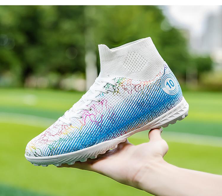 Novos sapatos de futebol masculinos com pontas longas, botas de futebol de cano alto, calçados de treinamento de competição de grama para adultos, tênis da moda