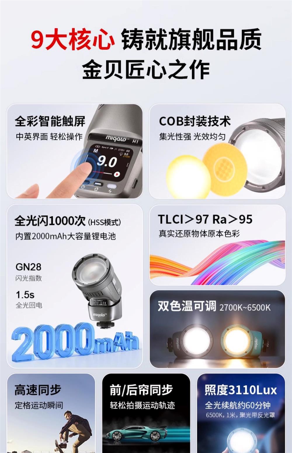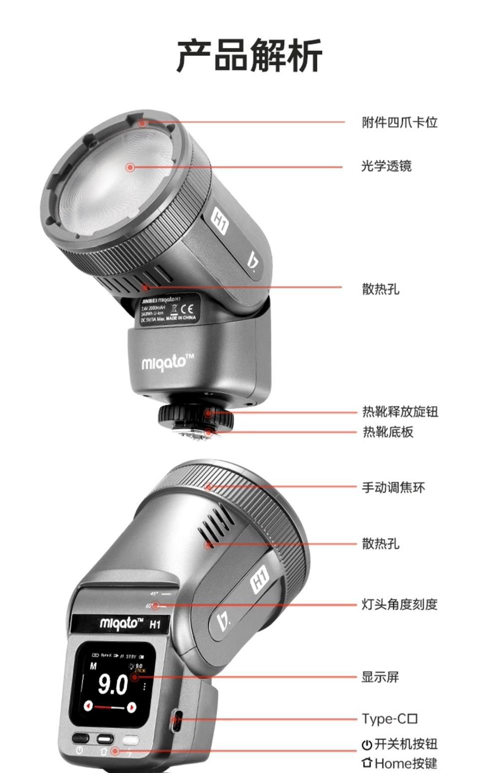 Flash Led Jinbei H1 Cabeça Redonda On-Camera Luz para Fotografia em Alta Velocidade Luz para Câmera Sapata Quente Ttl Fotografia Externa Luz Constante Luz de Preenchimento
