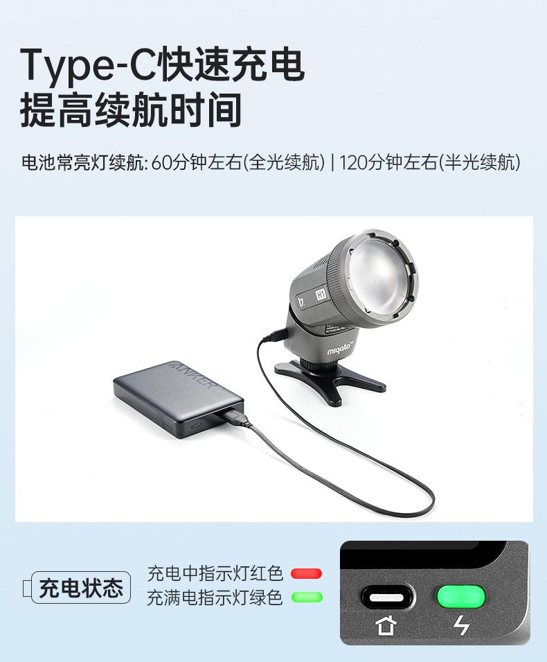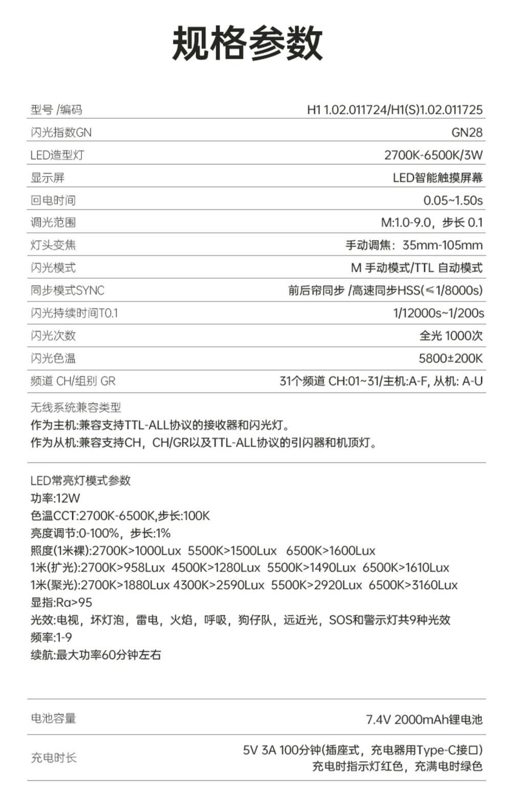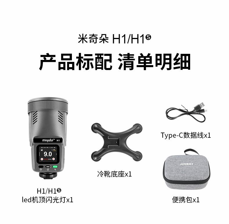 Type-c data cable x1 cold shoe base x1 led top flash xl