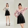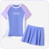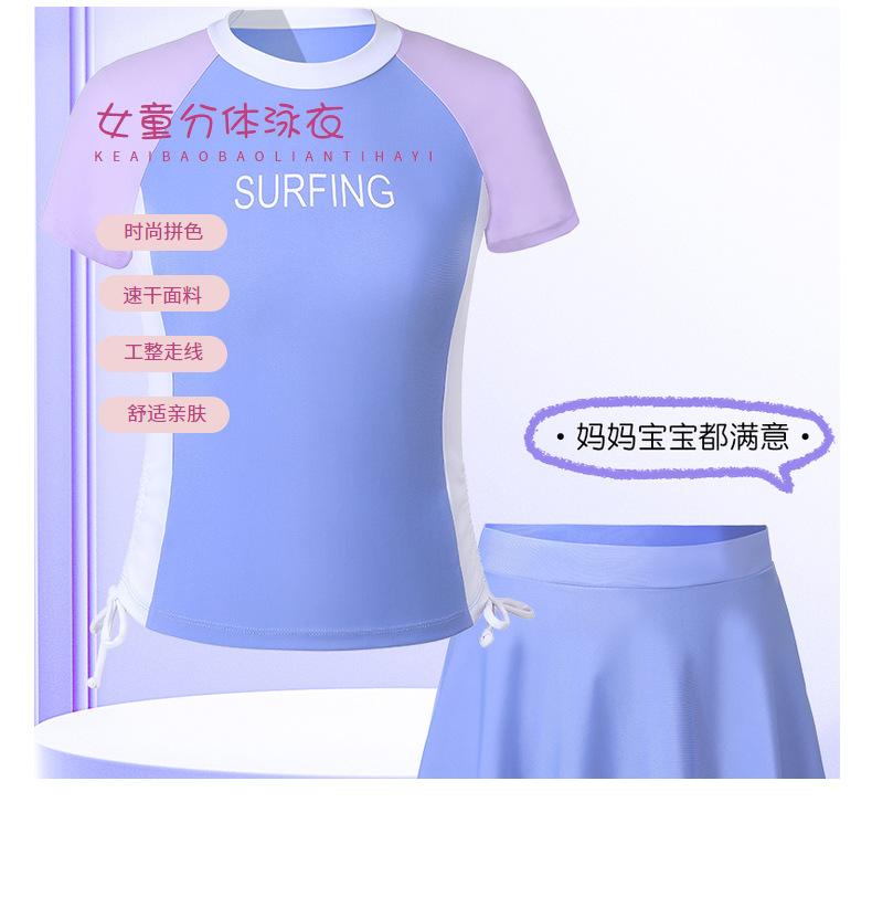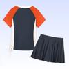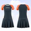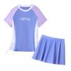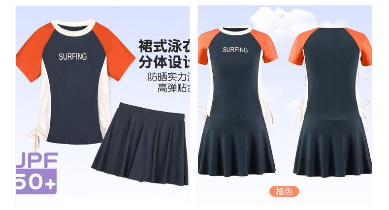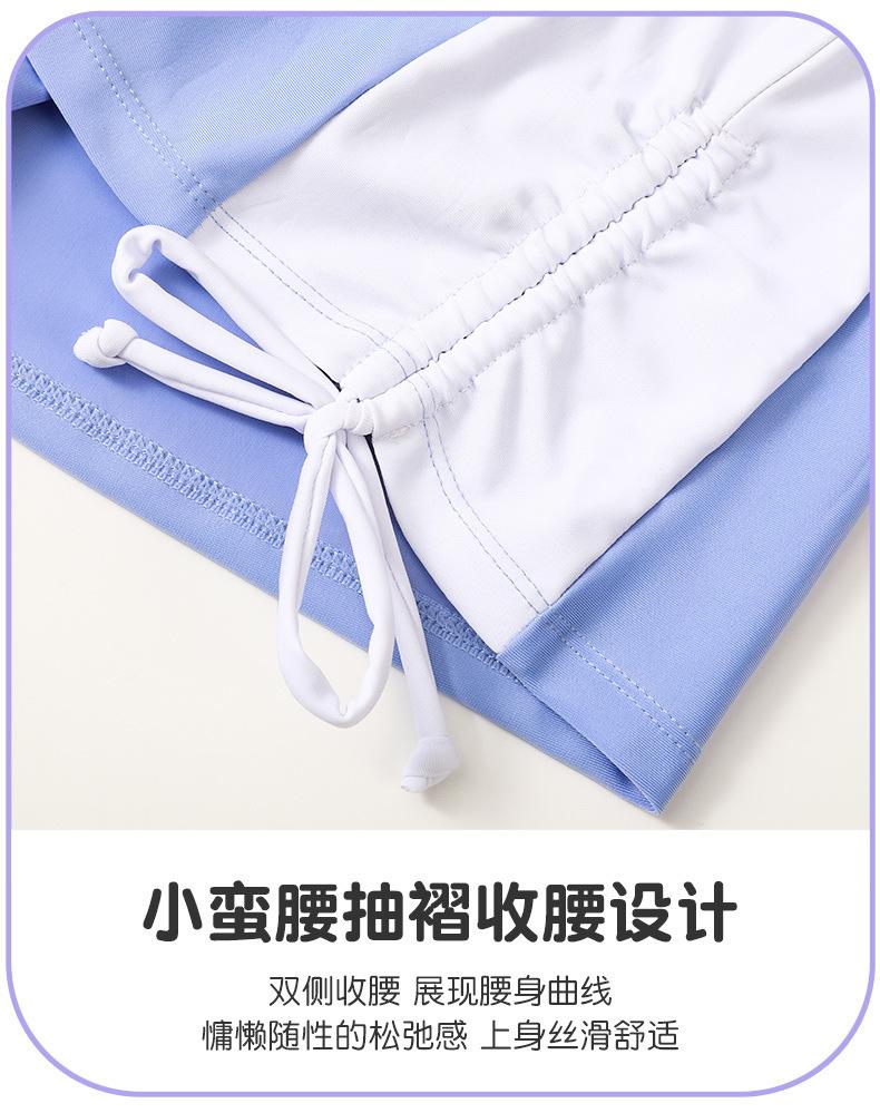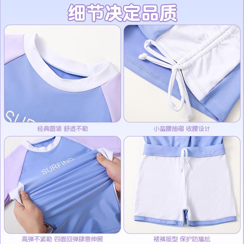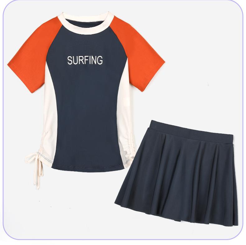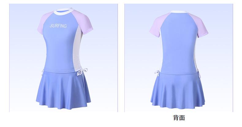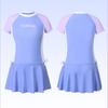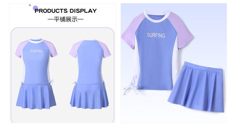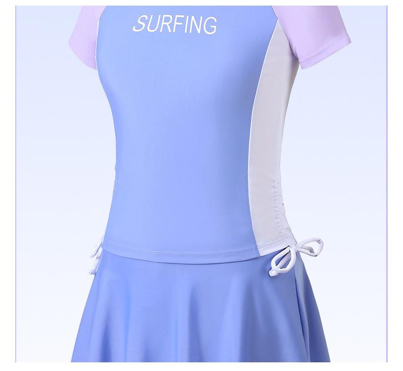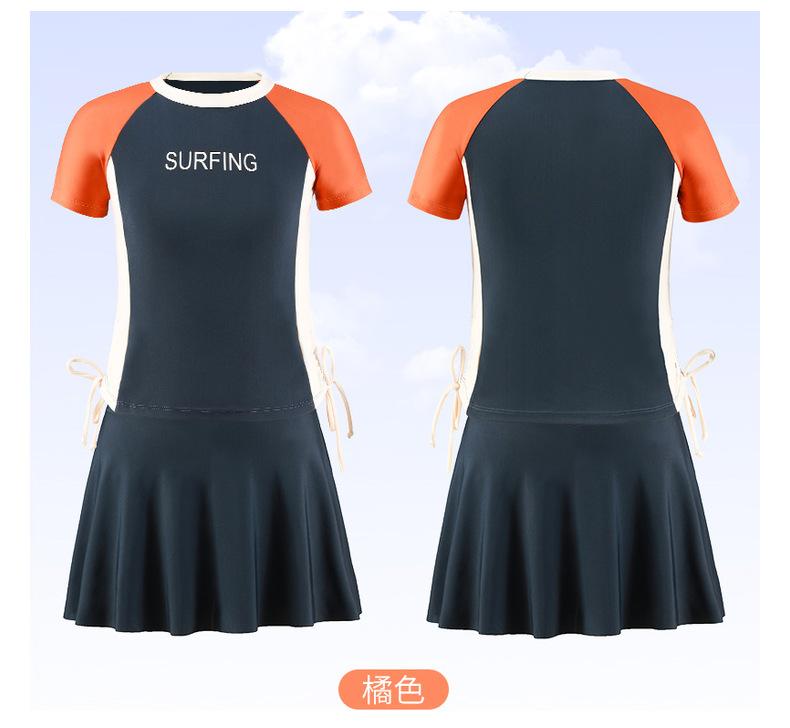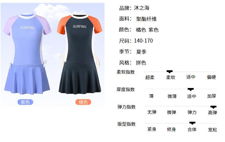 Traje de Banho Saia de Praia de Águas Quentes Traje de Banho Proteção Solar Traje de Banho Dividido Infantil 2025 Saia Curta Cor Pura Traje de Banho Aparência Emagrecedora Manga Curta Mulheres