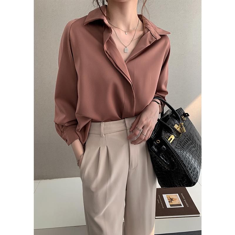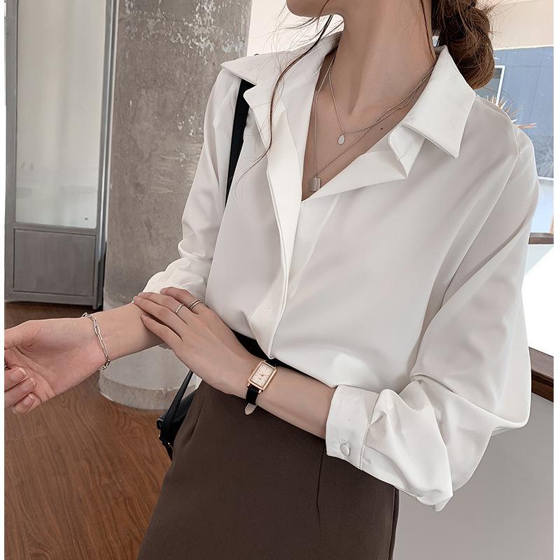 Camisa branca feminina primavera 2025, novo design, senso de nicho, estilo suave, blusa solta, manga comprida, camisa básica, moderna