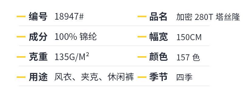 135g criptografado 280T taslon fino casual moda Coringa sobretudo jaqueta acolchoada de algodão tecido de poliamida tecido