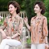 Roupas de verão para mulheres de meia-idade e idosas, camiseta de lapela de manga média, camisa estilo ocidental, blusa da moda nova cor para mães 2025