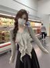 Suéter de manga comprida com babados e decote em V estilo Hot Girl para o outono de 2024, novo design slim fit para mulheres