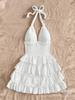 2025 Novo Europeu e Americano Transfronteiriço Férias Desejo Puro Garota Quente Cor Sólida Alça Sem Costas Vestido Bolo Saia Curta para Mulheres