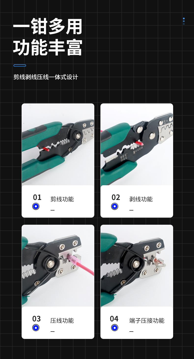 Alicates de Crimpagem Multifuncionais, Alicates Decapadores de Cabo Eletricista com Mola, Alicates para Cabo de Rede, Alicates de Crimpagem de Terminal por Compressão a Frio