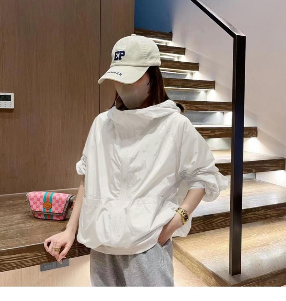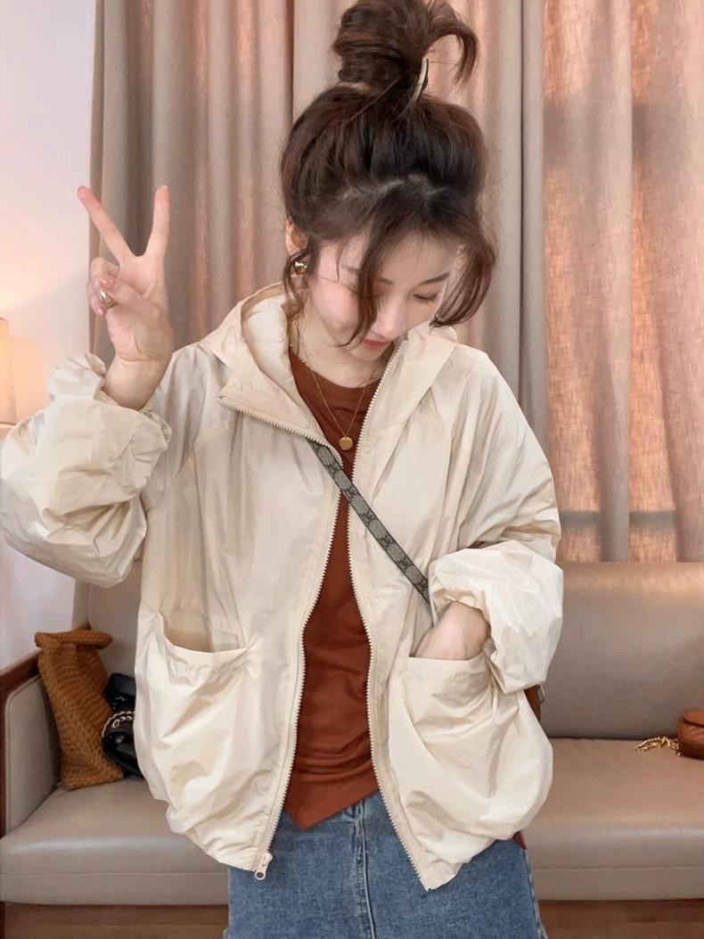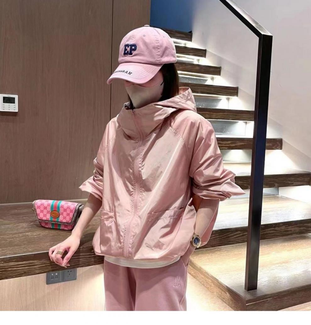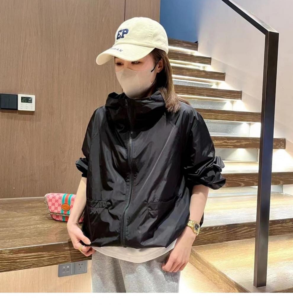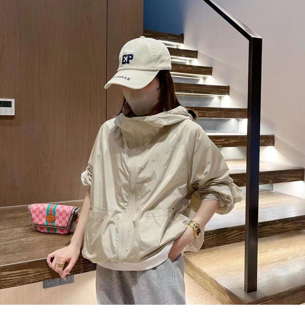 Europeu 2025 Novo Jaqueta Corta-vento com Capuz e Bolso Duplo para Proteção Solar Roupas de Proteção Solar Femininas Jaqueta Cardigã com Zíper Moderna