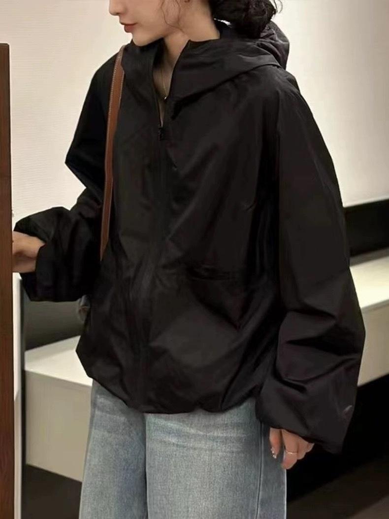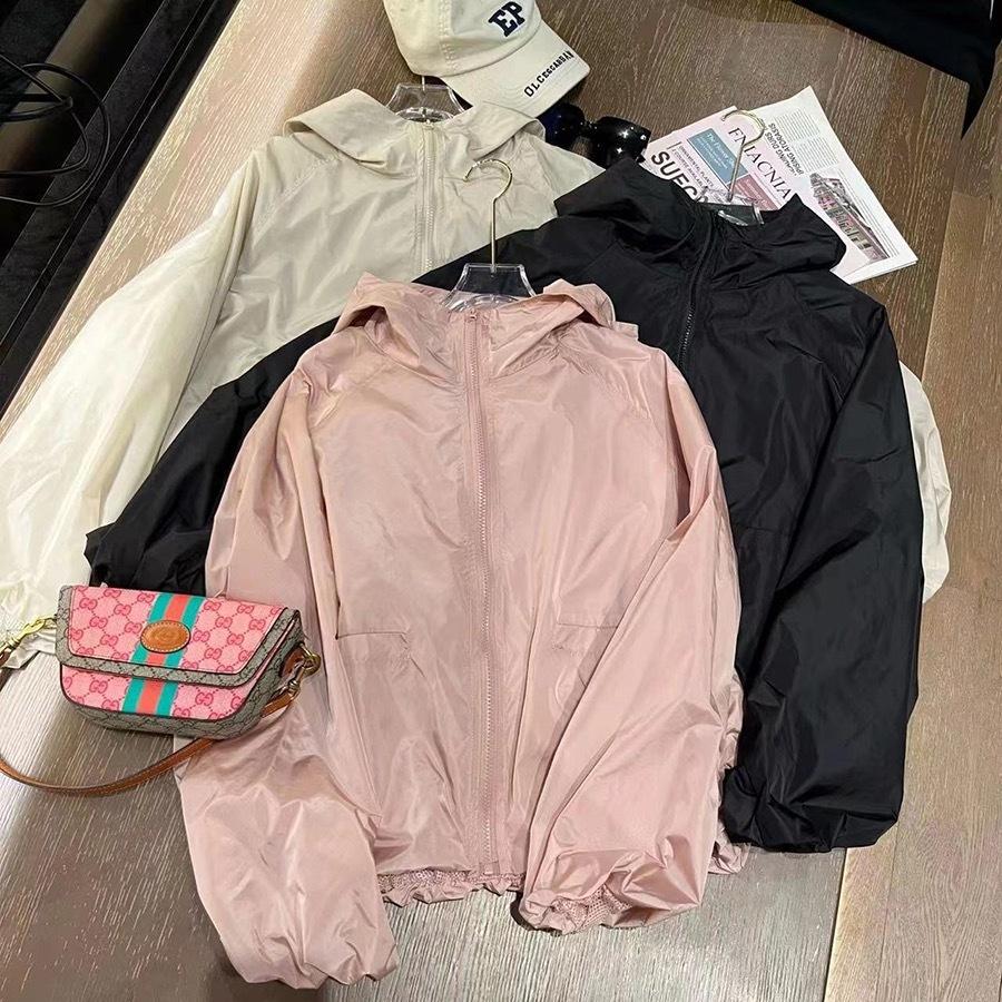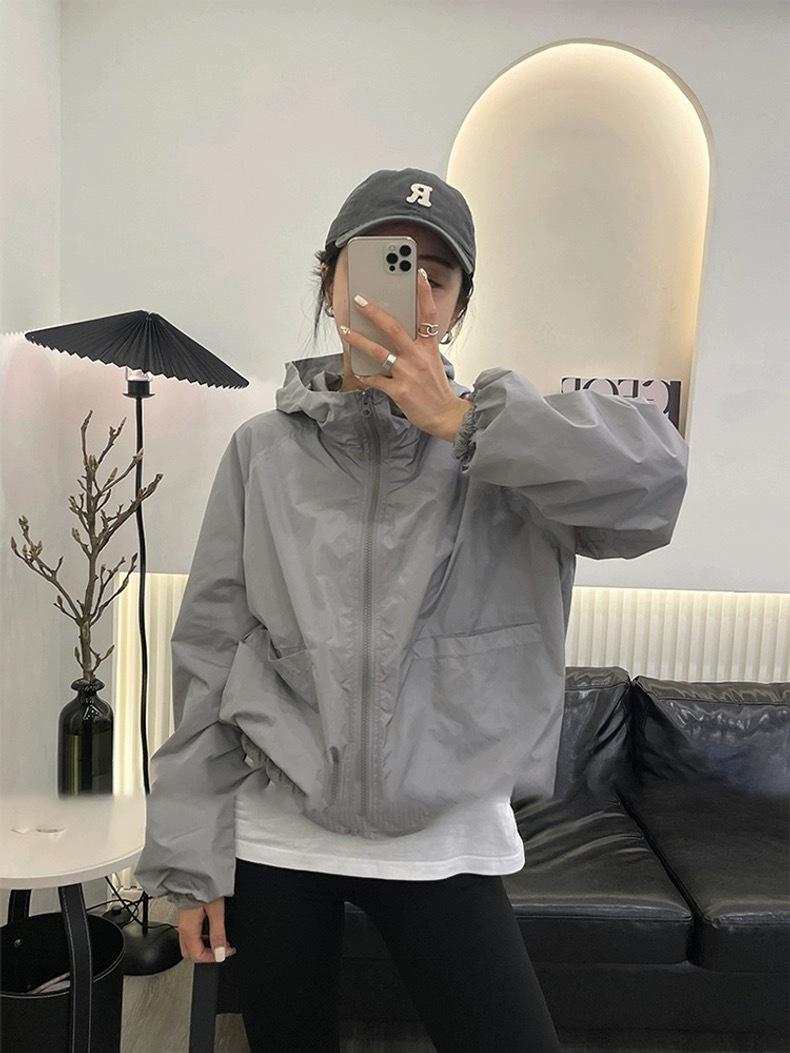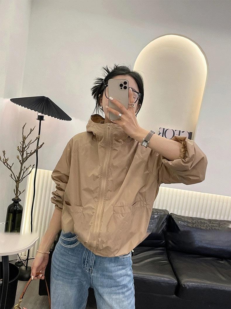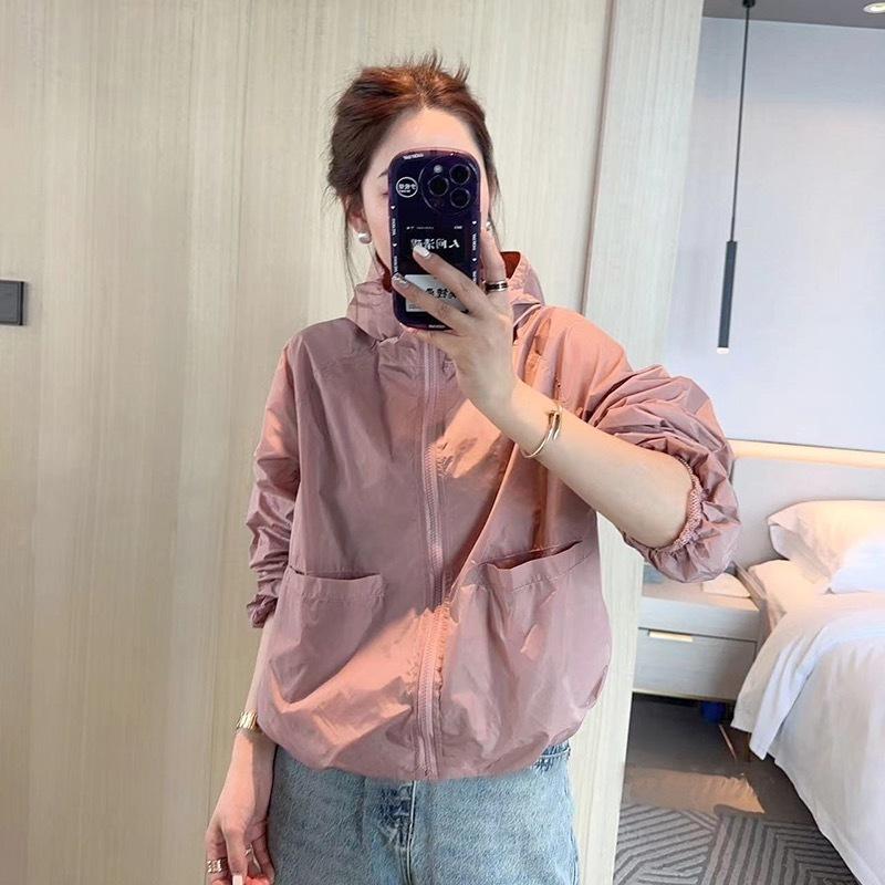 Europeu 2025 Novo Jaqueta Corta-vento com Capuz e Bolso Duplo para Proteção Solar Roupas de Proteção Solar Femininas Jaqueta Cardigã com Zíper Moderna