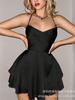 2025 Novo Europeu e Americano Transfronteiriço Puro Desejo Garota Quente Cor Sólida Sem Costas Alça Vestido Babado Dupla Camada Saia Curta para Mulheres