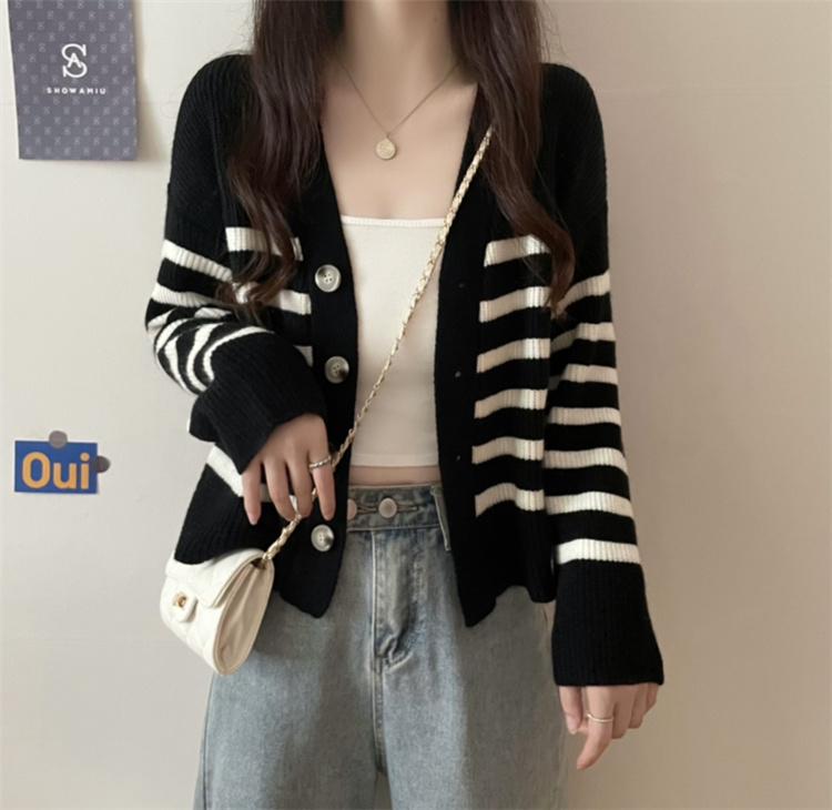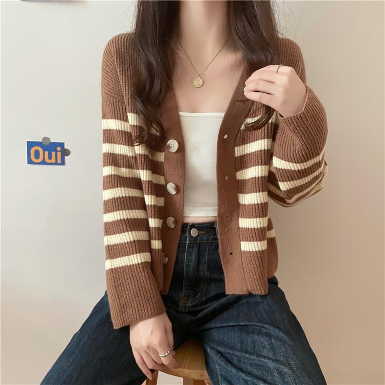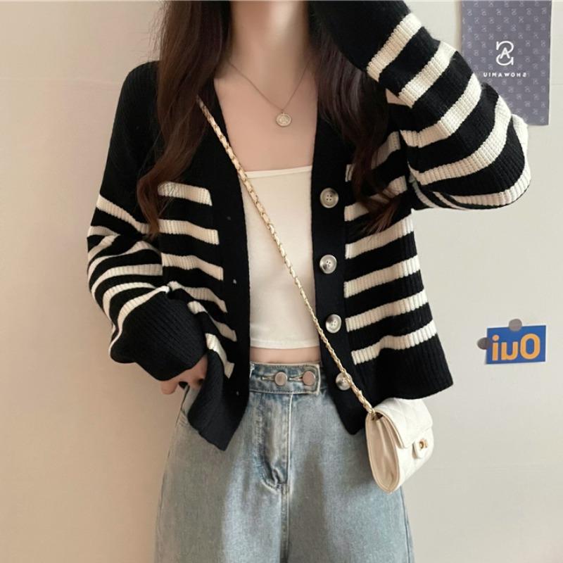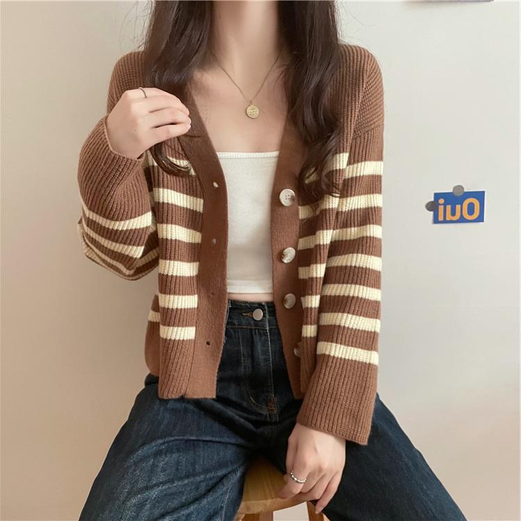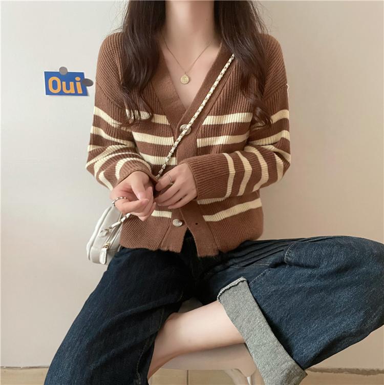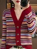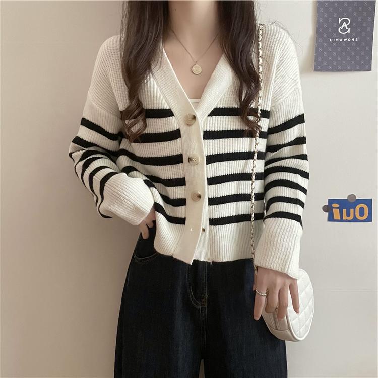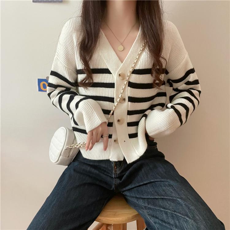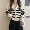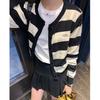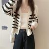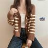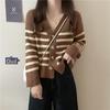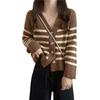 Cardigan Tricotado Listrado Feminino Outono e Inverno 2026 Novo Solto Estilo Coreano Estilo Preguiçoso Jaqueta Suéter Manga Longa Decote V