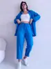 Conjunto de duas peças feminino elegante plus size primavera e outono, calça cropped, cintura alta, solta, manga comprida, da Amazon, da Cross-border