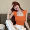 Novo top curto de malha feminino de manga curta 2025, design de ombro de verão explosivo, Sense, malha curta, doce e picante, combinando com tudo