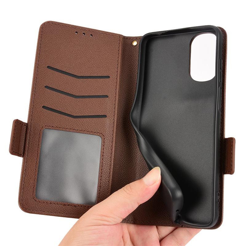 【Características】Couro de lichia de alta qualidade, resistente ao desgaste, resistente a quedas, carteira portátil com slot para cartão