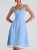 2025 Novo Vestido Europeu e Americano Transfronteiriço de Moda Desejo Puro Cor Pura Costura de Laço Decote Costas Nuas Alças Saia Midi para Mulheres