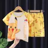 Pijama infantil de verão, novo conjunto de três peças de manga curta, para meninos, bebês, médios e grandes, com desenho animado, roupa de casa, moda