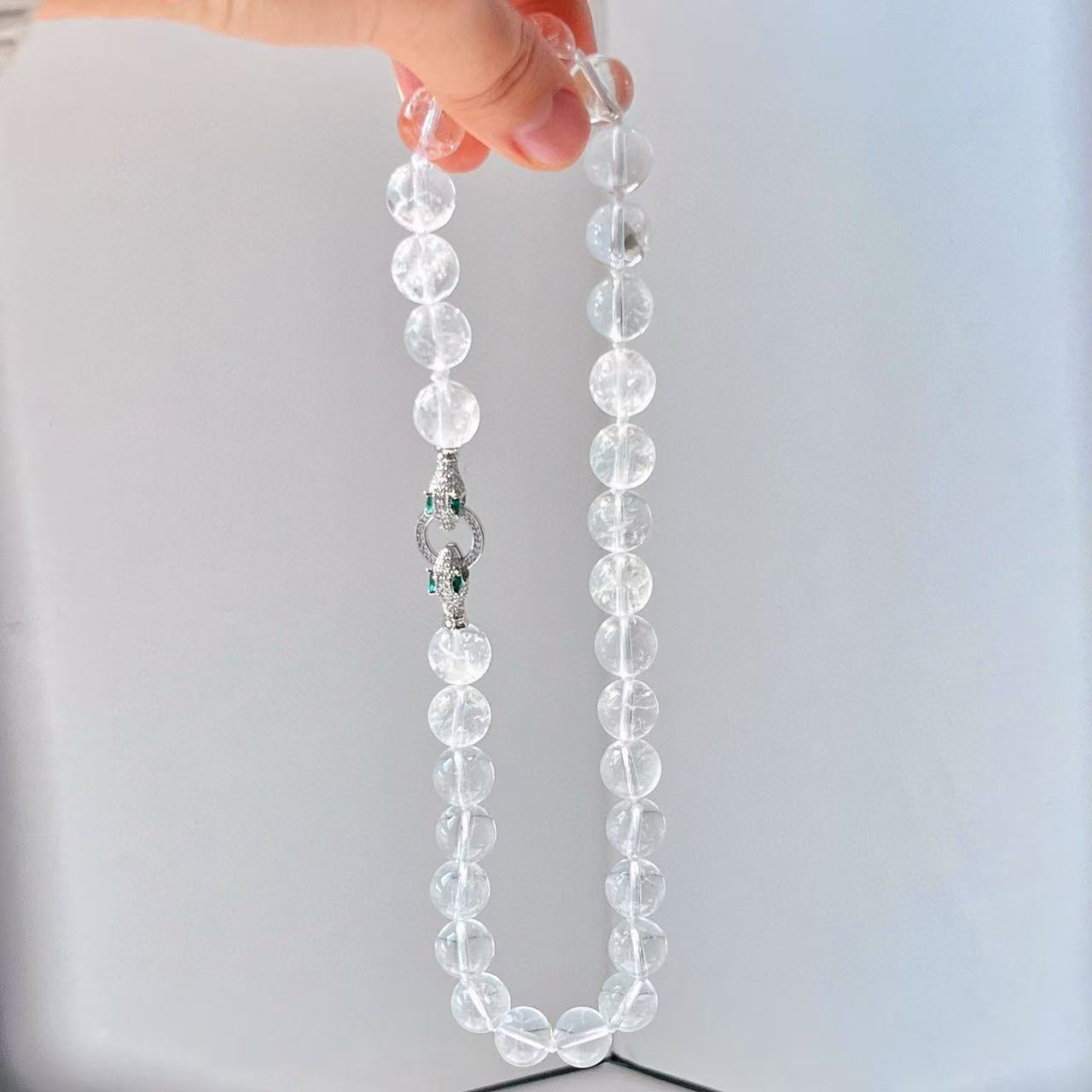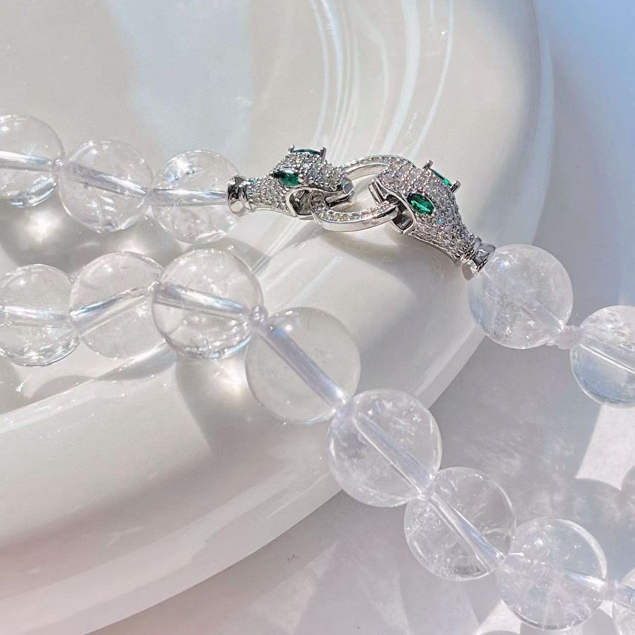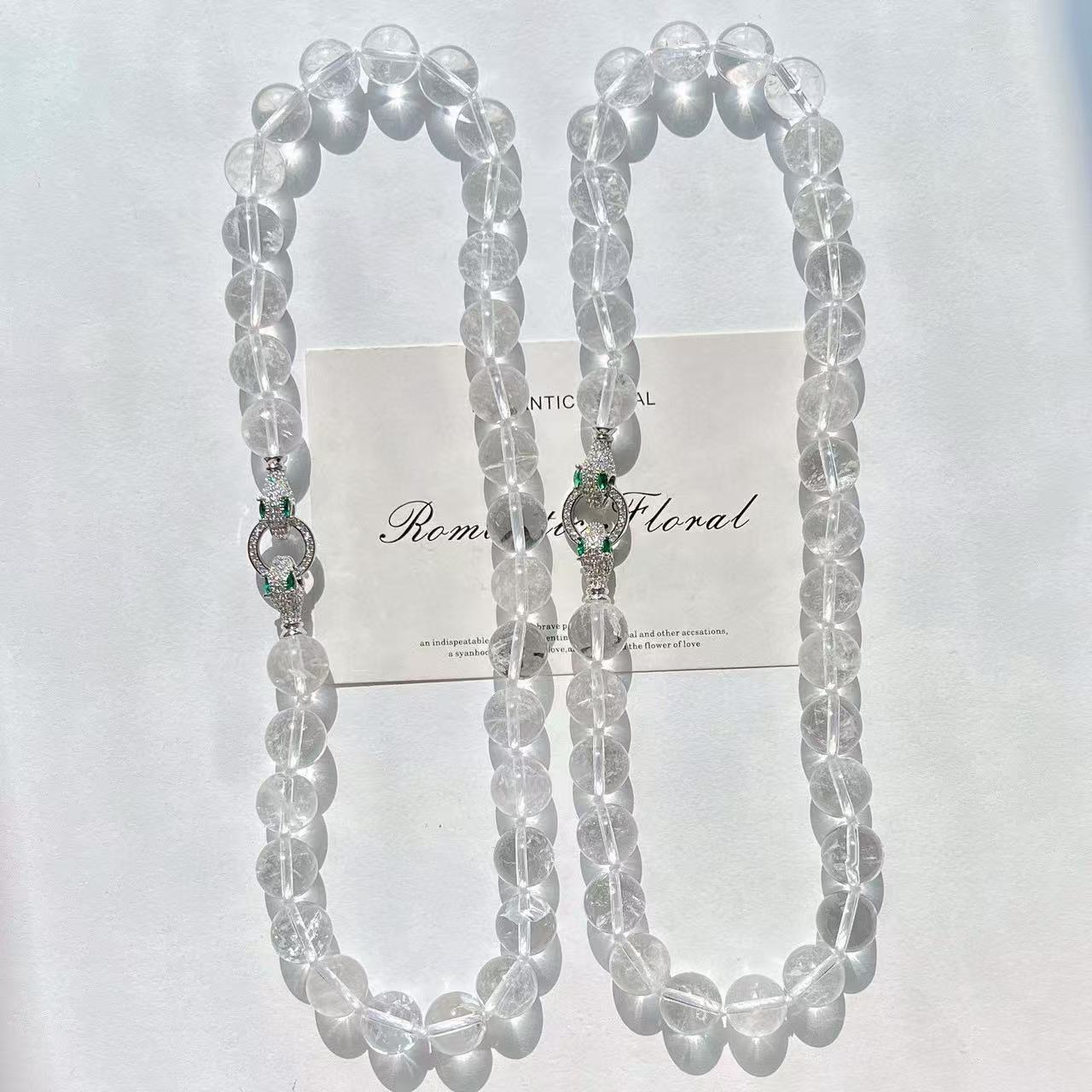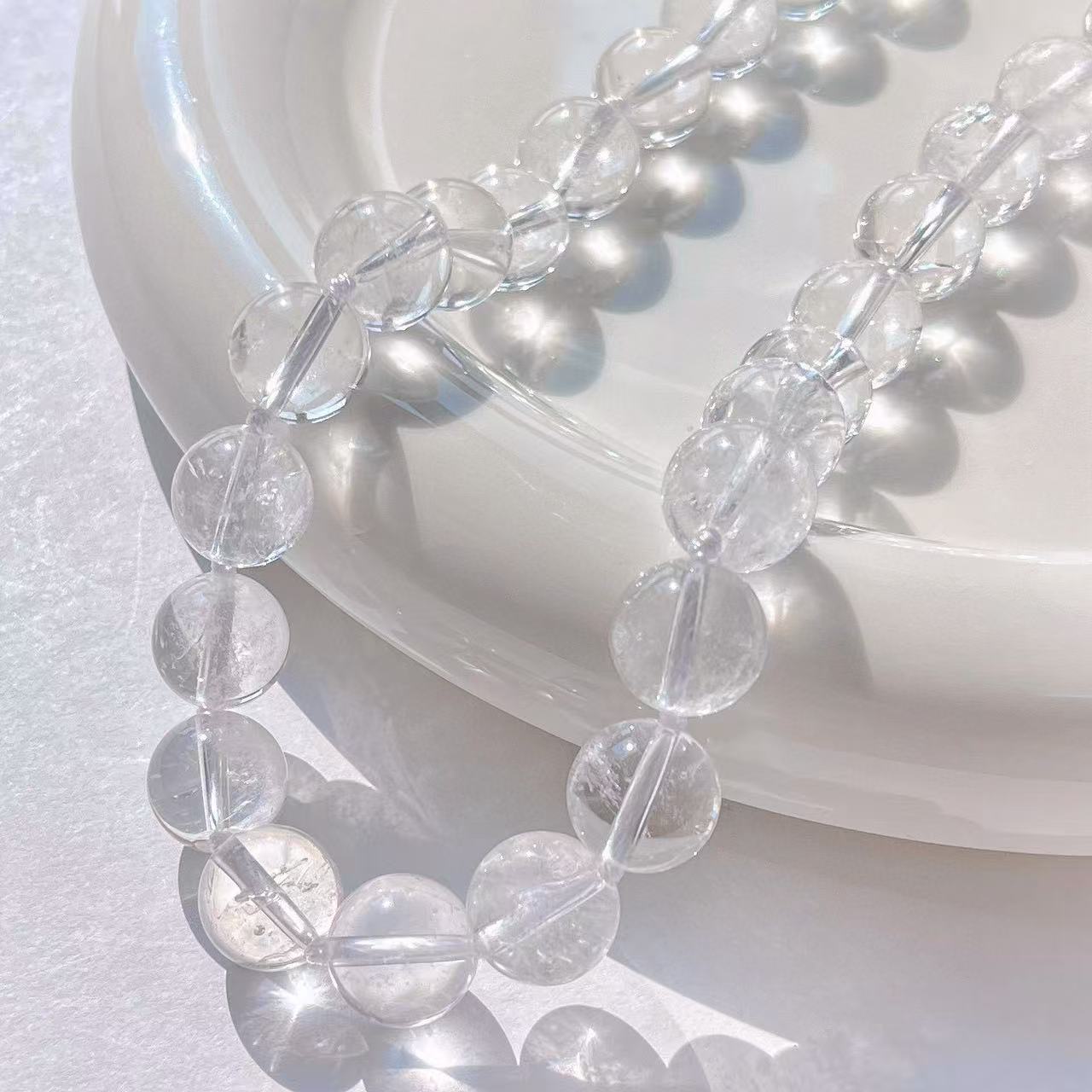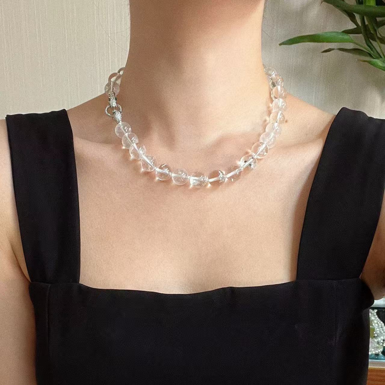 Colar de cristal branco natural de grão grande de 12 mm com corrente básica para clavícula de viajante