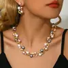 Conjunto de duas peças de colar e brincos de pérolas quentes europeias e americanas, joias de pérolas combinando com clavícula, conjunto feminino por atacado