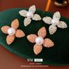 Brincos Medievais Vintage de Flor Agulha de Prata Cravejados com Diamantes e Pérolas Brincos Exagerados de Alta Indústria Brincos Retrô de Alta Qualidade para Mulheres