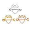 Piercing de mamilo em formato de coração de pêssego com diamantes incrustados em 7 cores, europeu e americano, joias para piercing de mamilo, aço inoxidável 316L, atacado