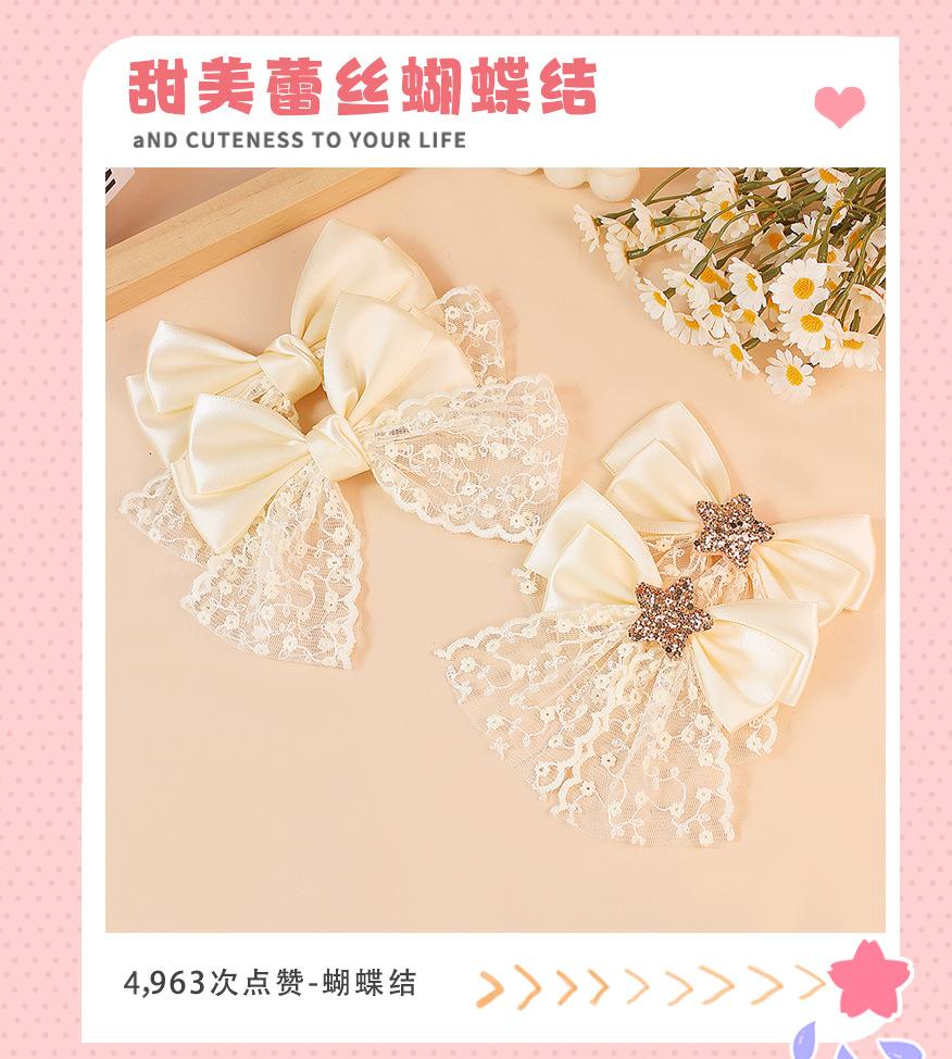 【nome】Novo grampo de cabelo coreano com laço de renda creme, malha, presilha de mola, meio rabo de cavalo, super fada, acessórios de cabelo