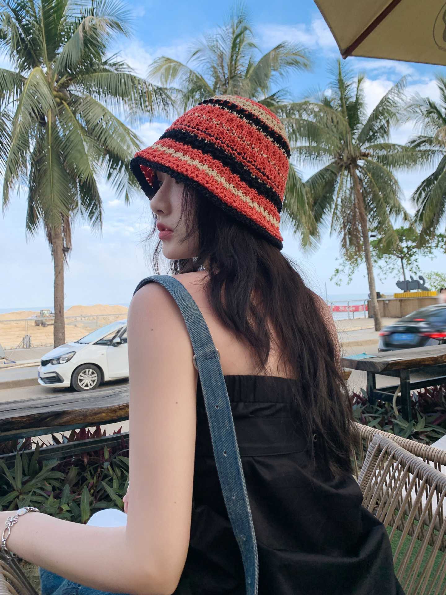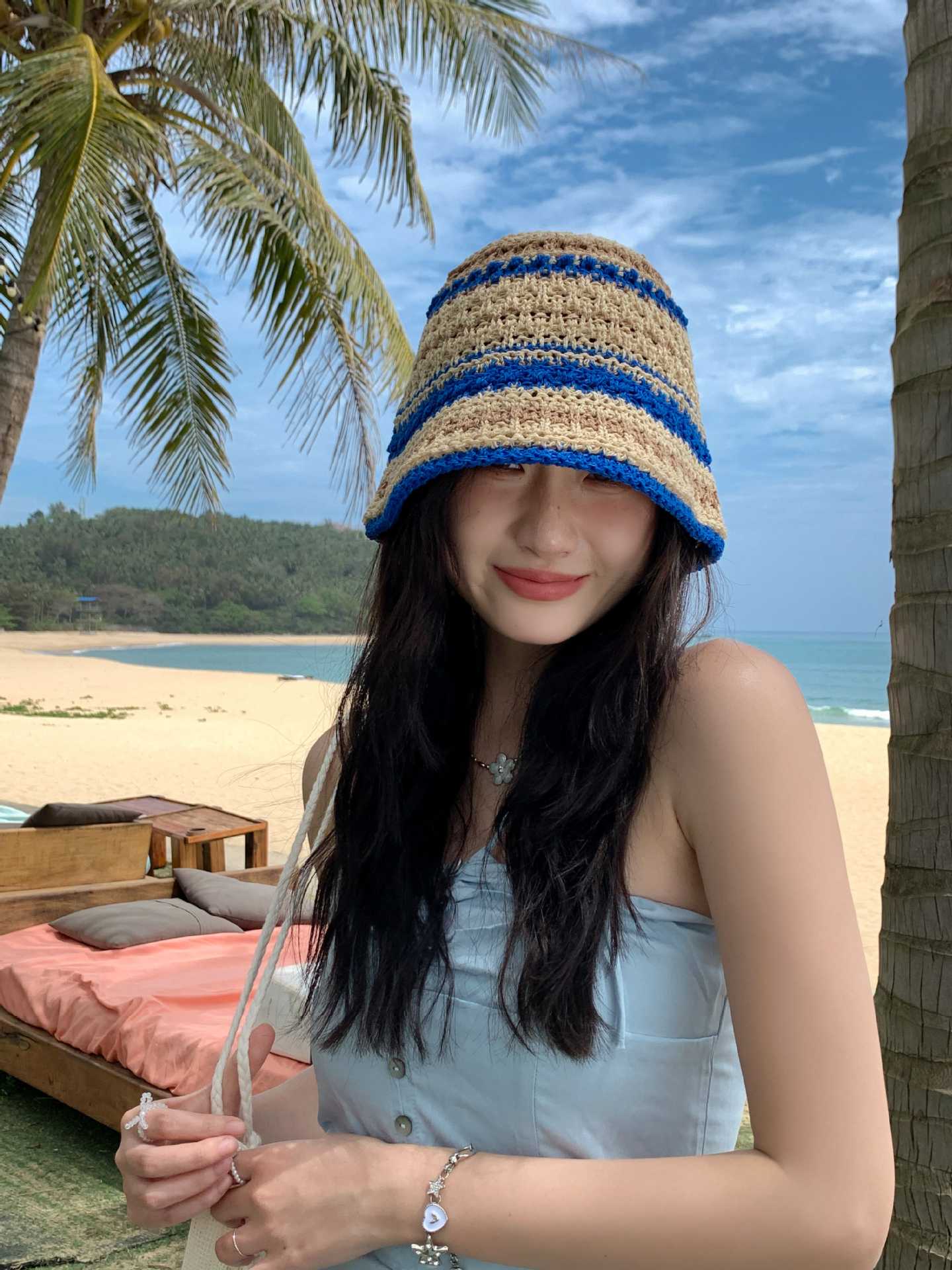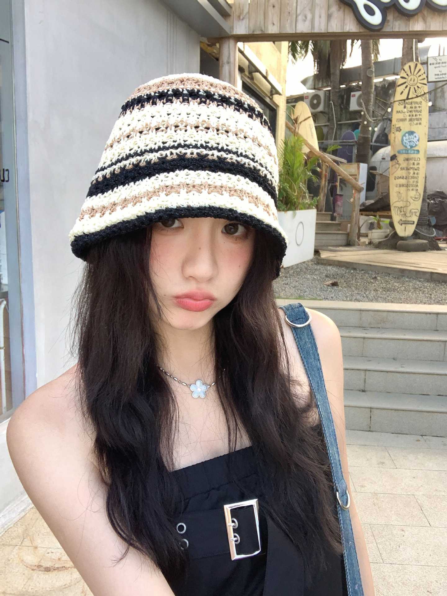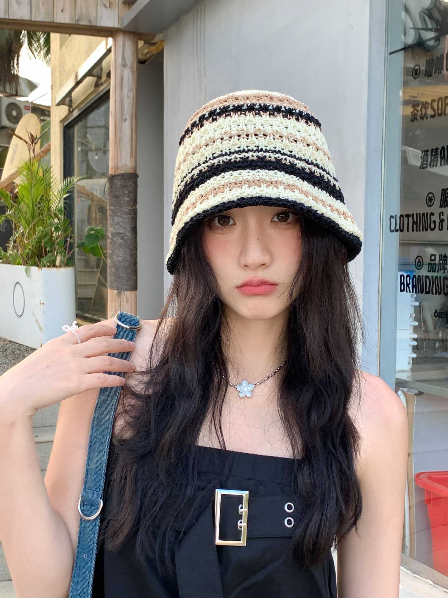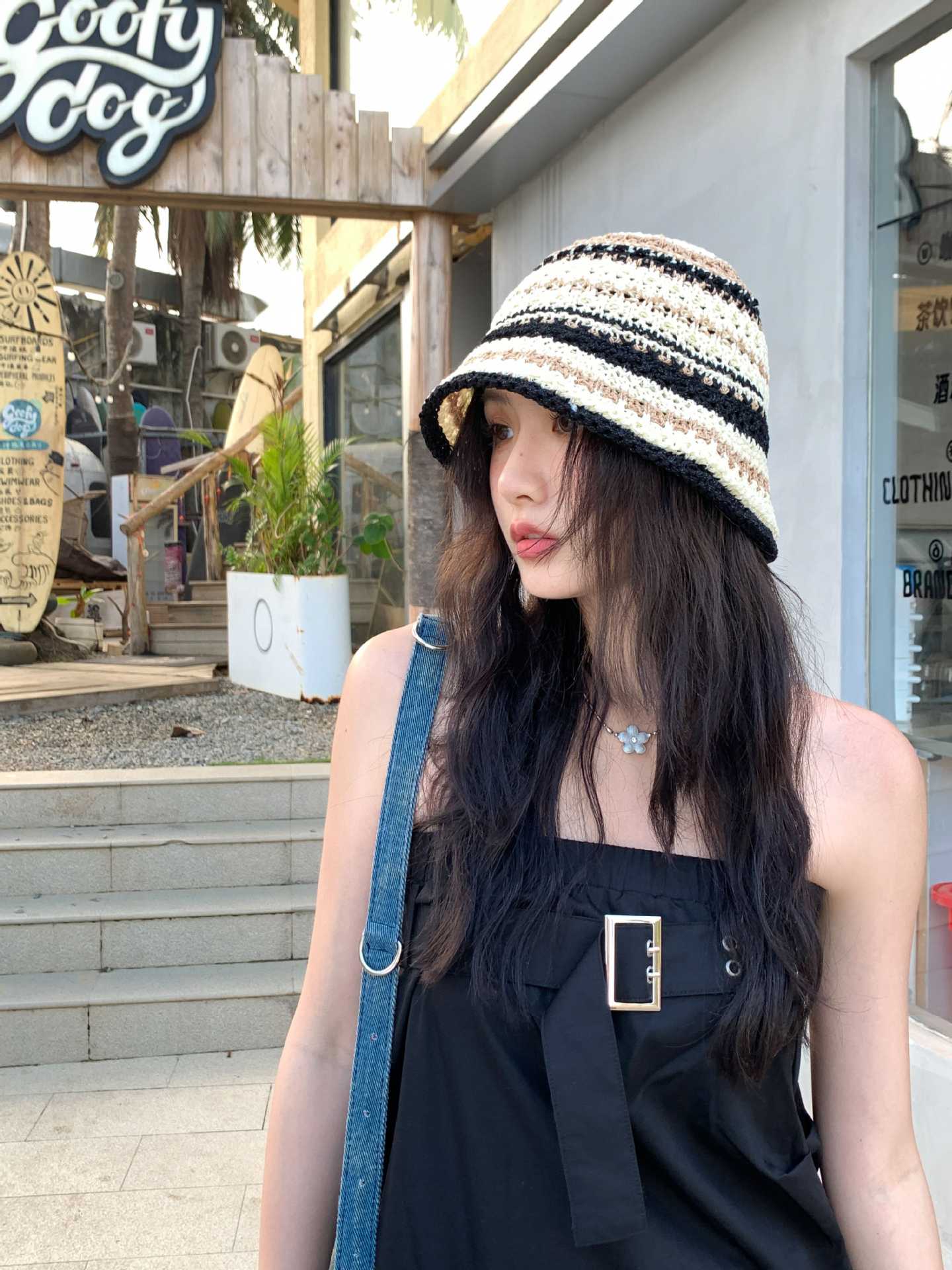 Chapéu de Pescador Listrado Japonês Tecido Infantil Primavera e Verão Que Mostra o Rosto Pequeno Chapéu de Balde Versátil Praia Sombreamento Chapéu de Sol Moderno