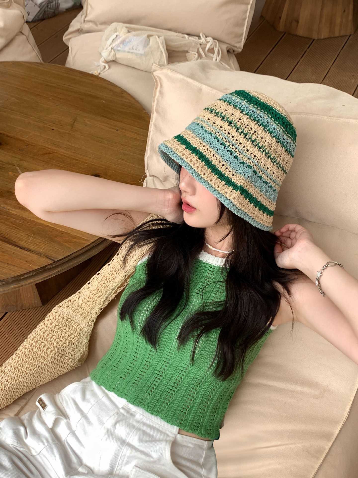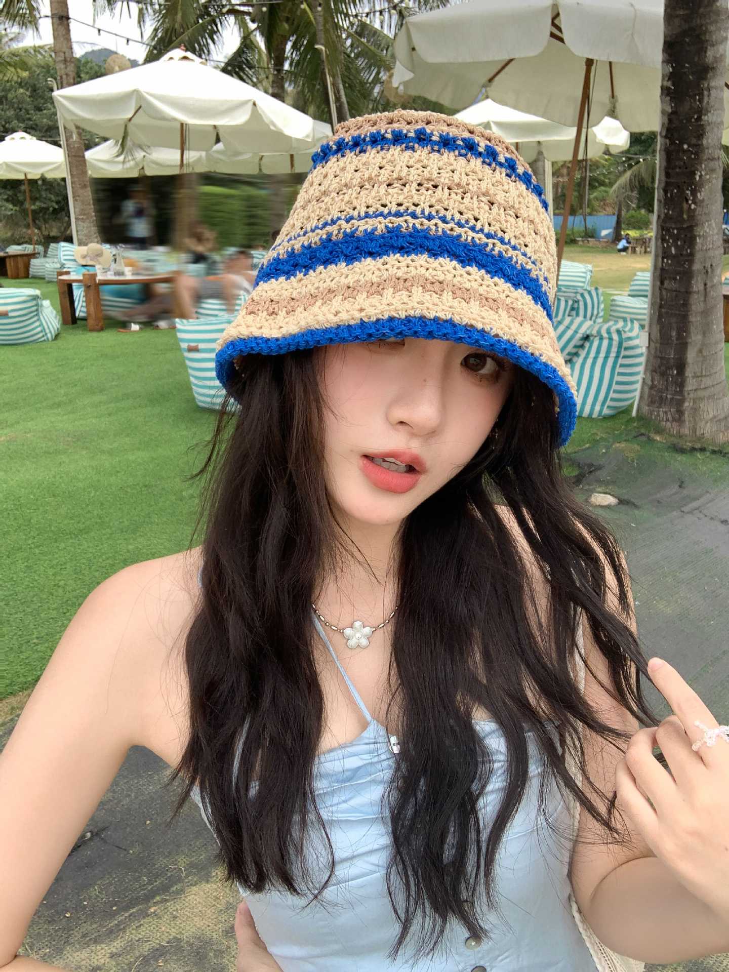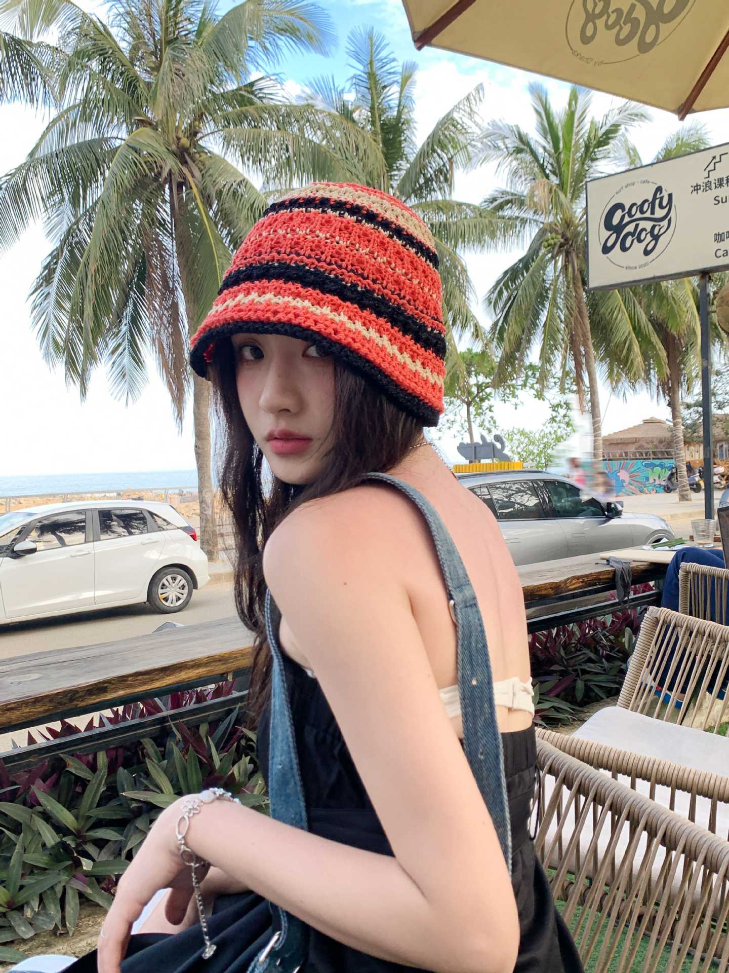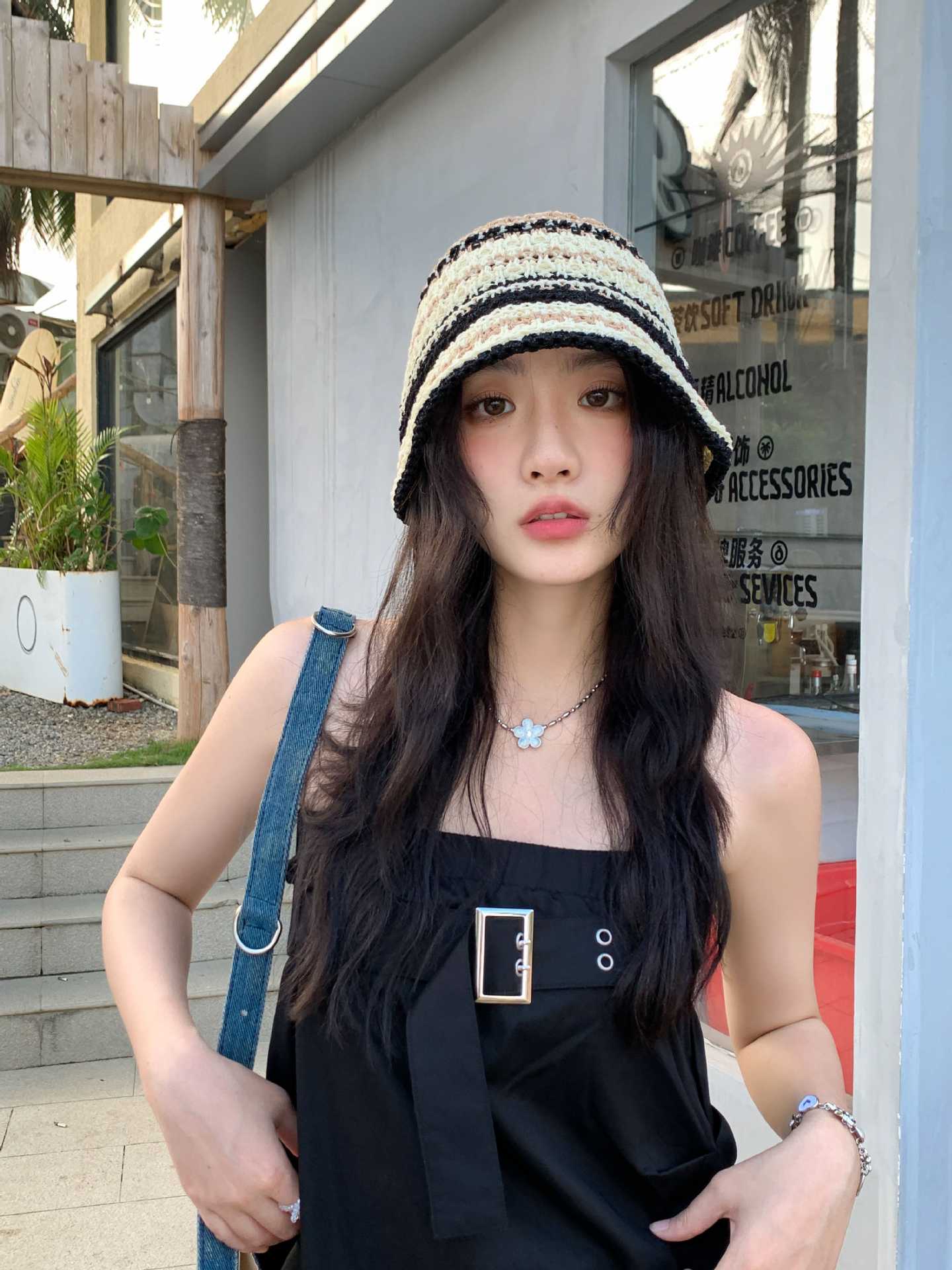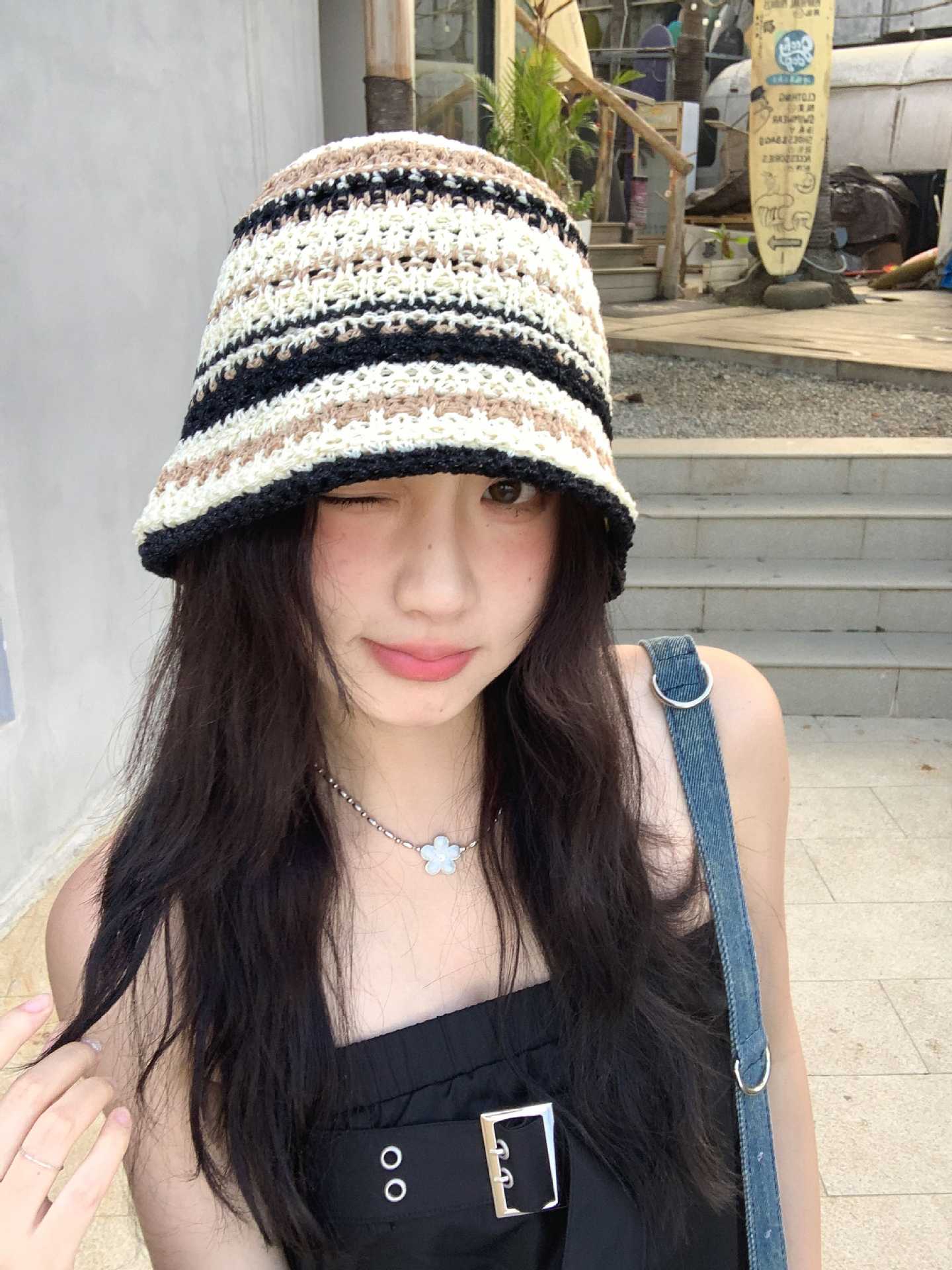 Chapéu de Pescador Listrado Japonês Tecido Infantil Primavera e Verão Que Mostra o Rosto Pequeno Chapéu de Balde Versátil Praia Sombreamento Chapéu de Sol Moderno