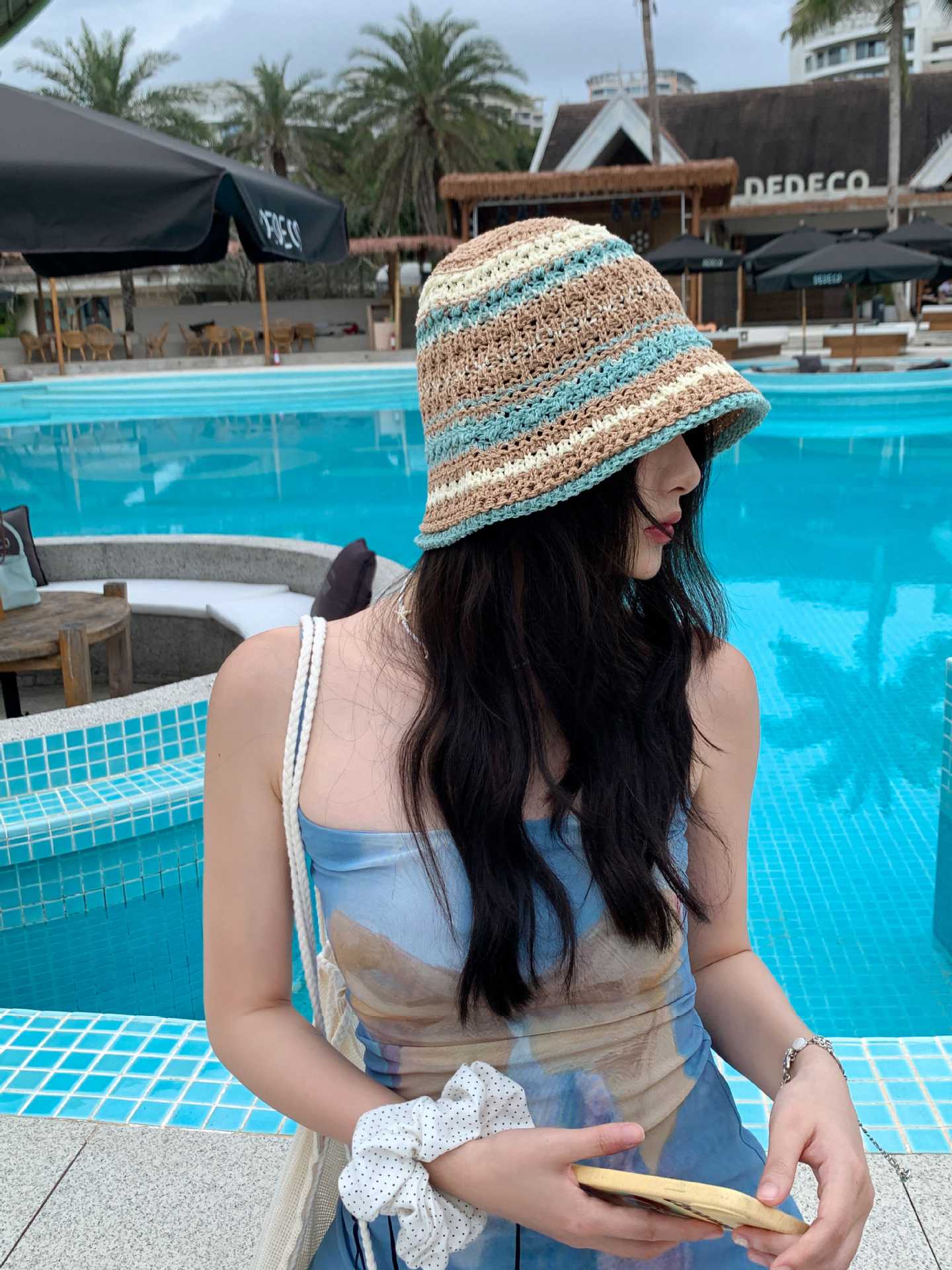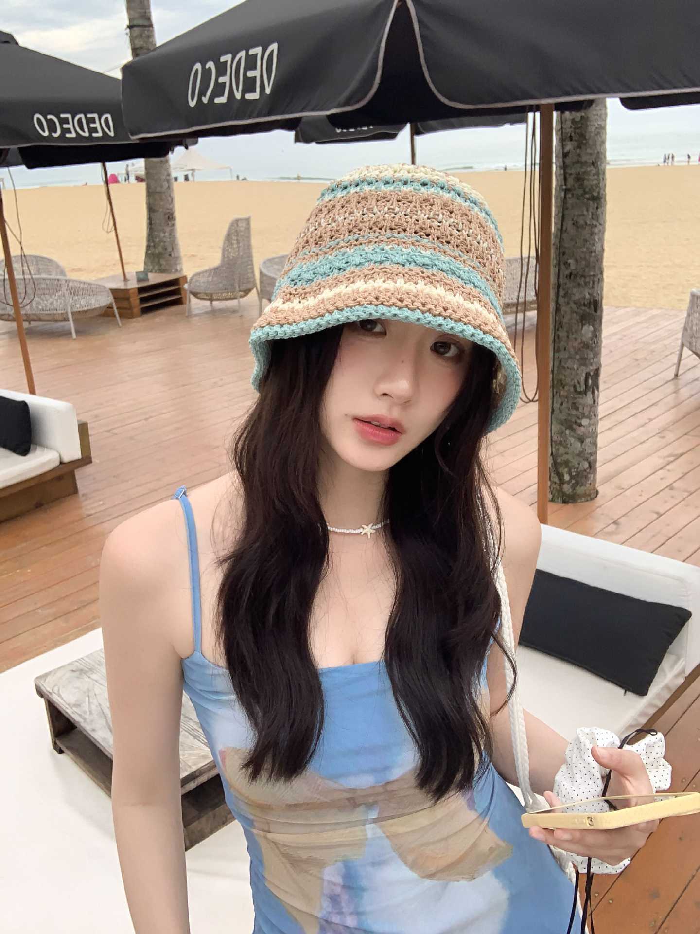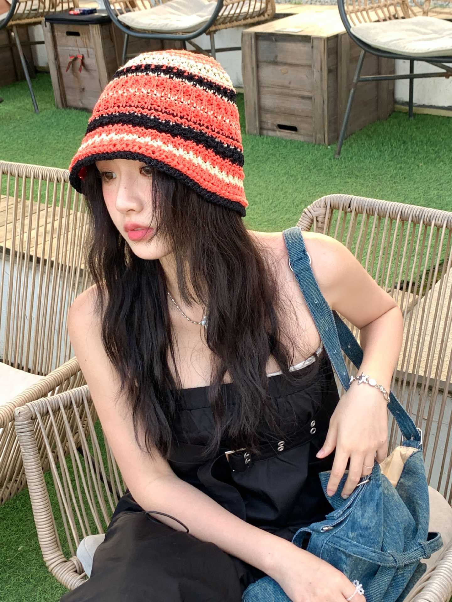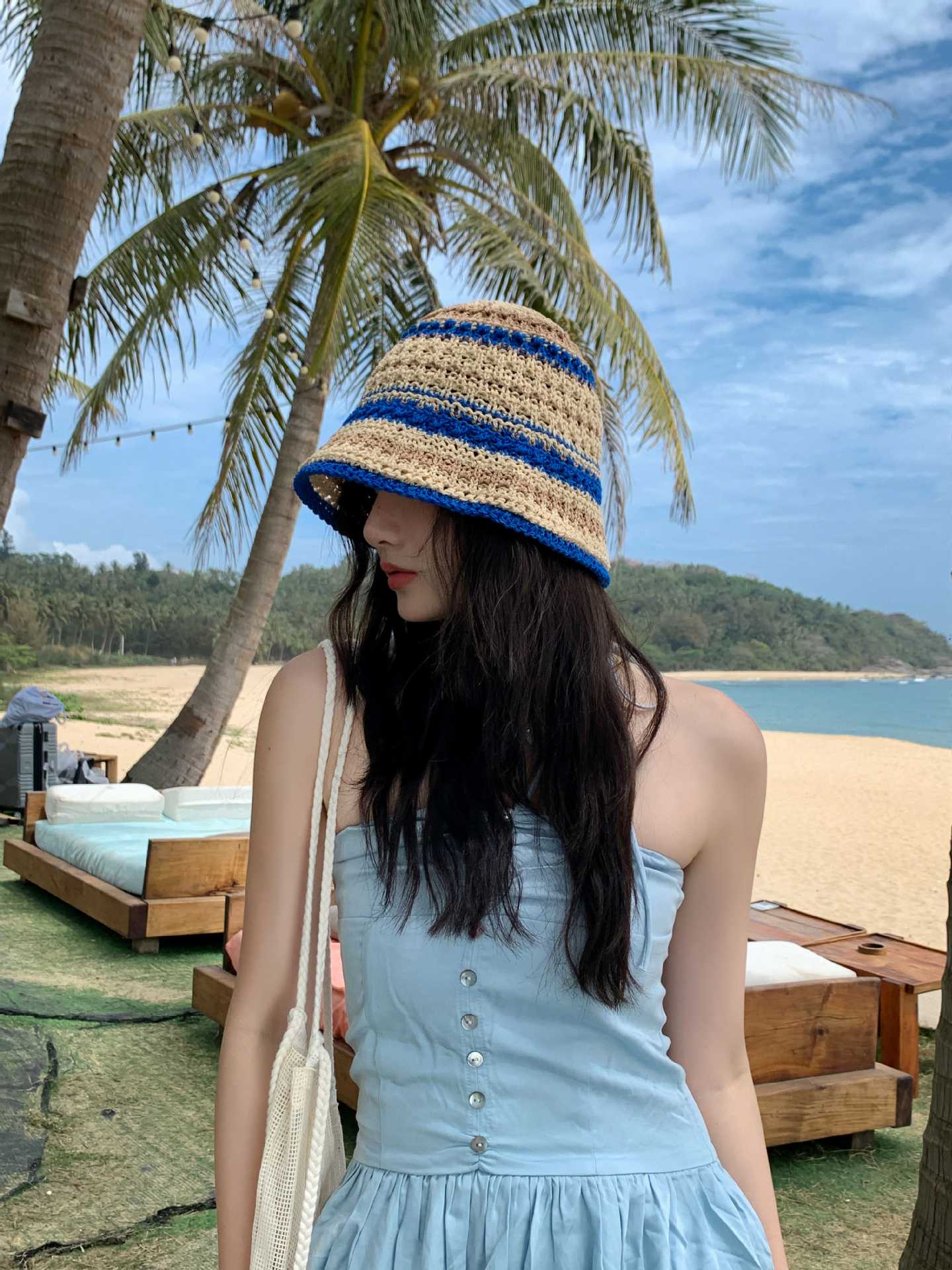 Chapéu de Pescador Listrado Japonês Tecido Infantil Primavera e Verão Que Mostra o Rosto Pequeno Chapéu de Balde Versátil Praia Sombreamento Chapéu de Sol Moderno