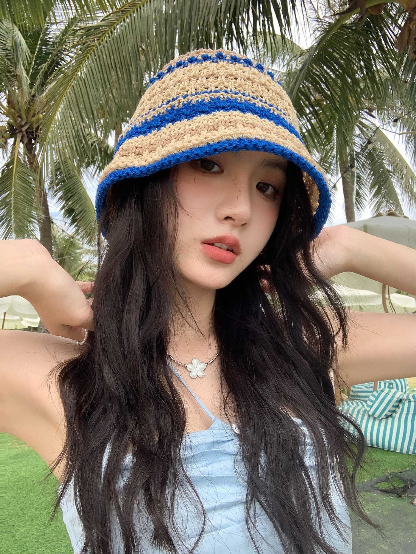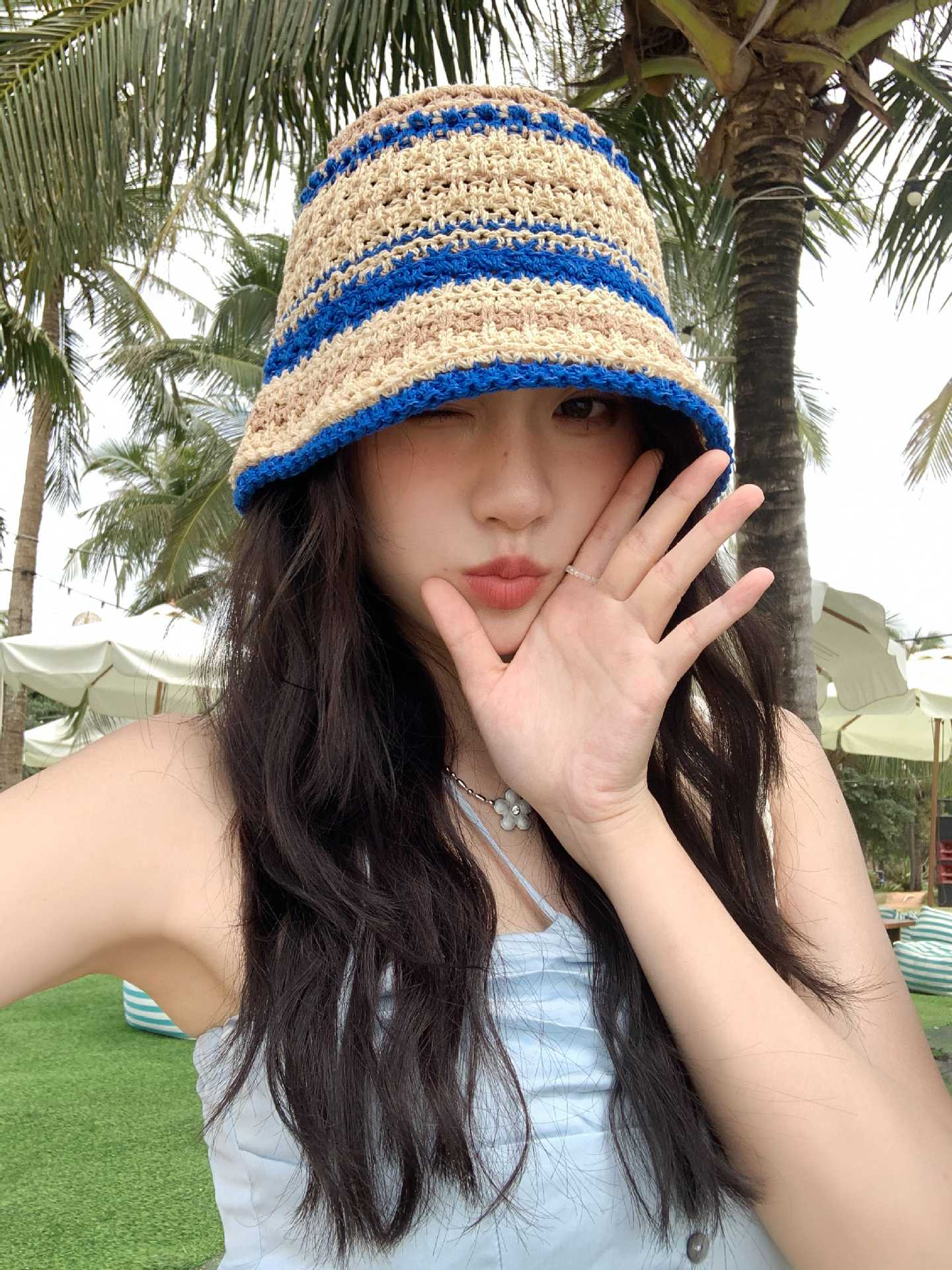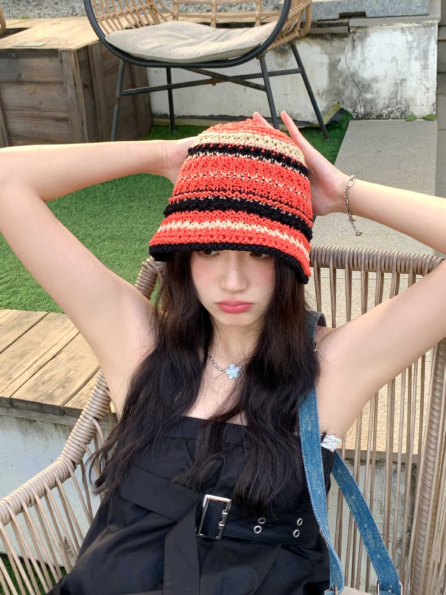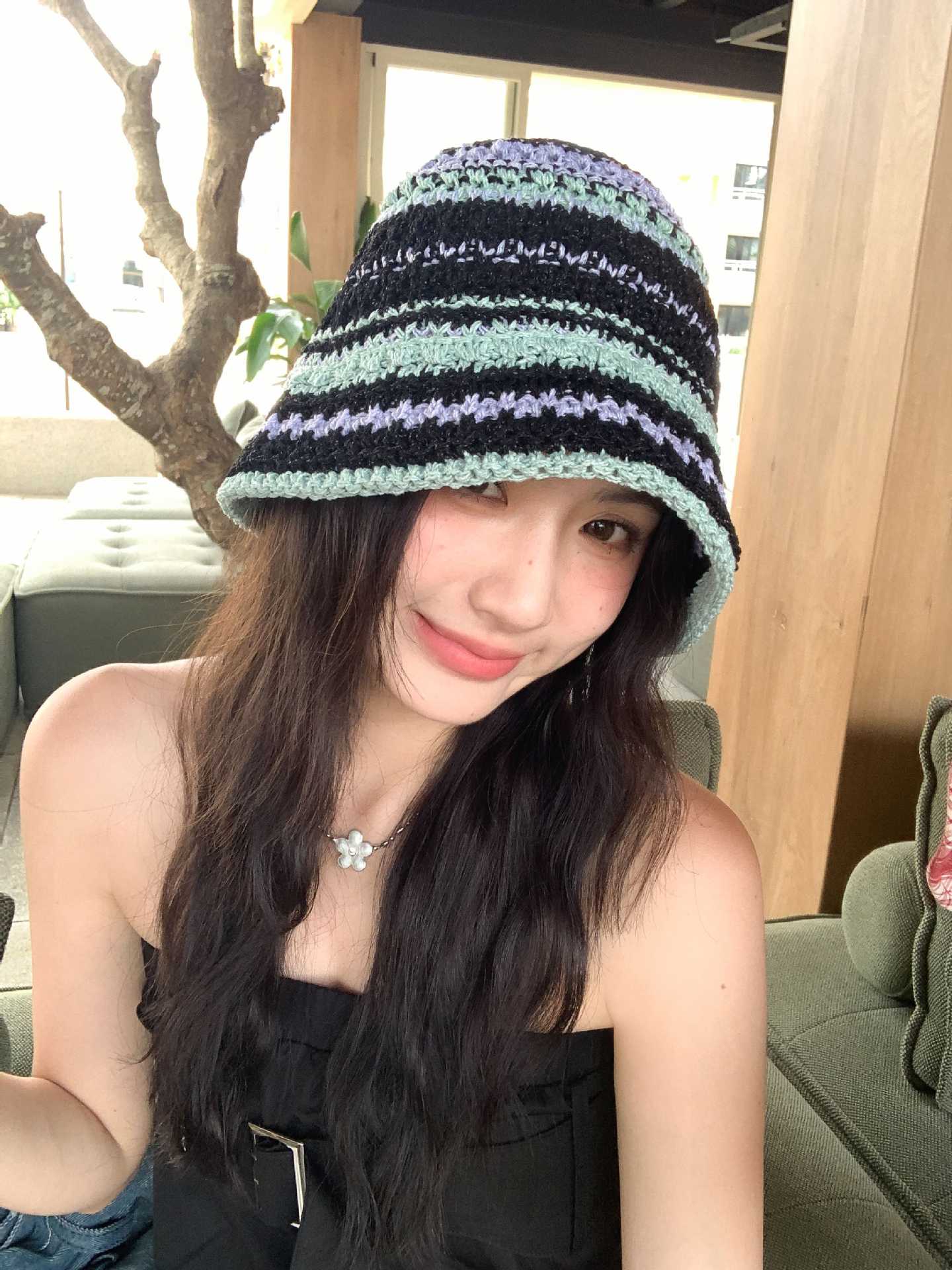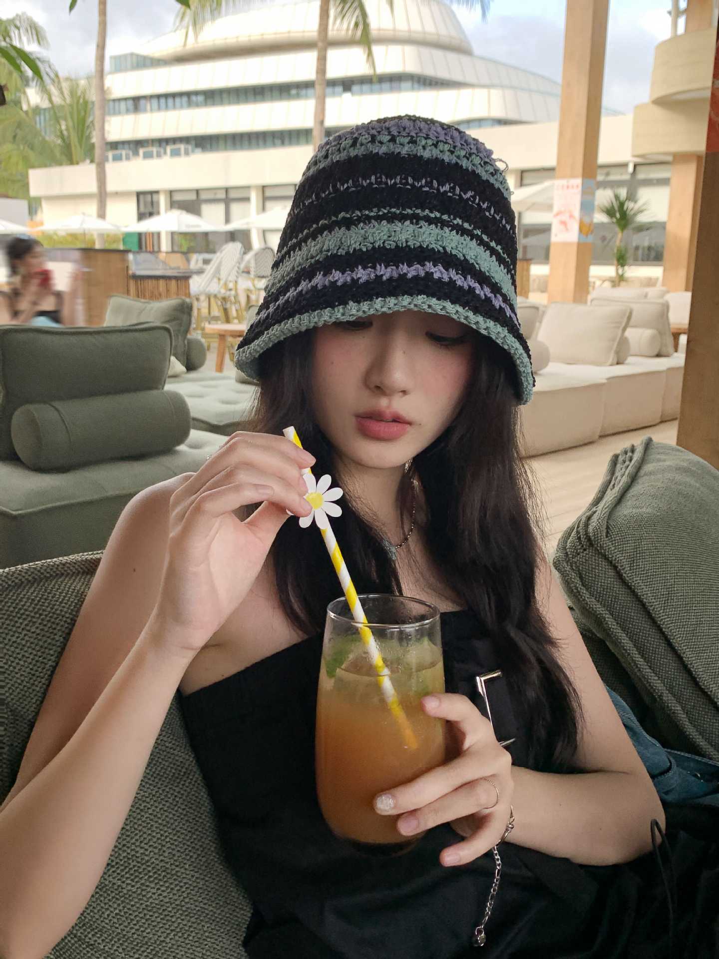 Chapéu de Pescador Listrado Japonês Tecido Infantil Primavera e Verão Que Mostra o Rosto Pequeno Chapéu de Balde Versátil Praia Sombreamento Chapéu de Sol Moderno