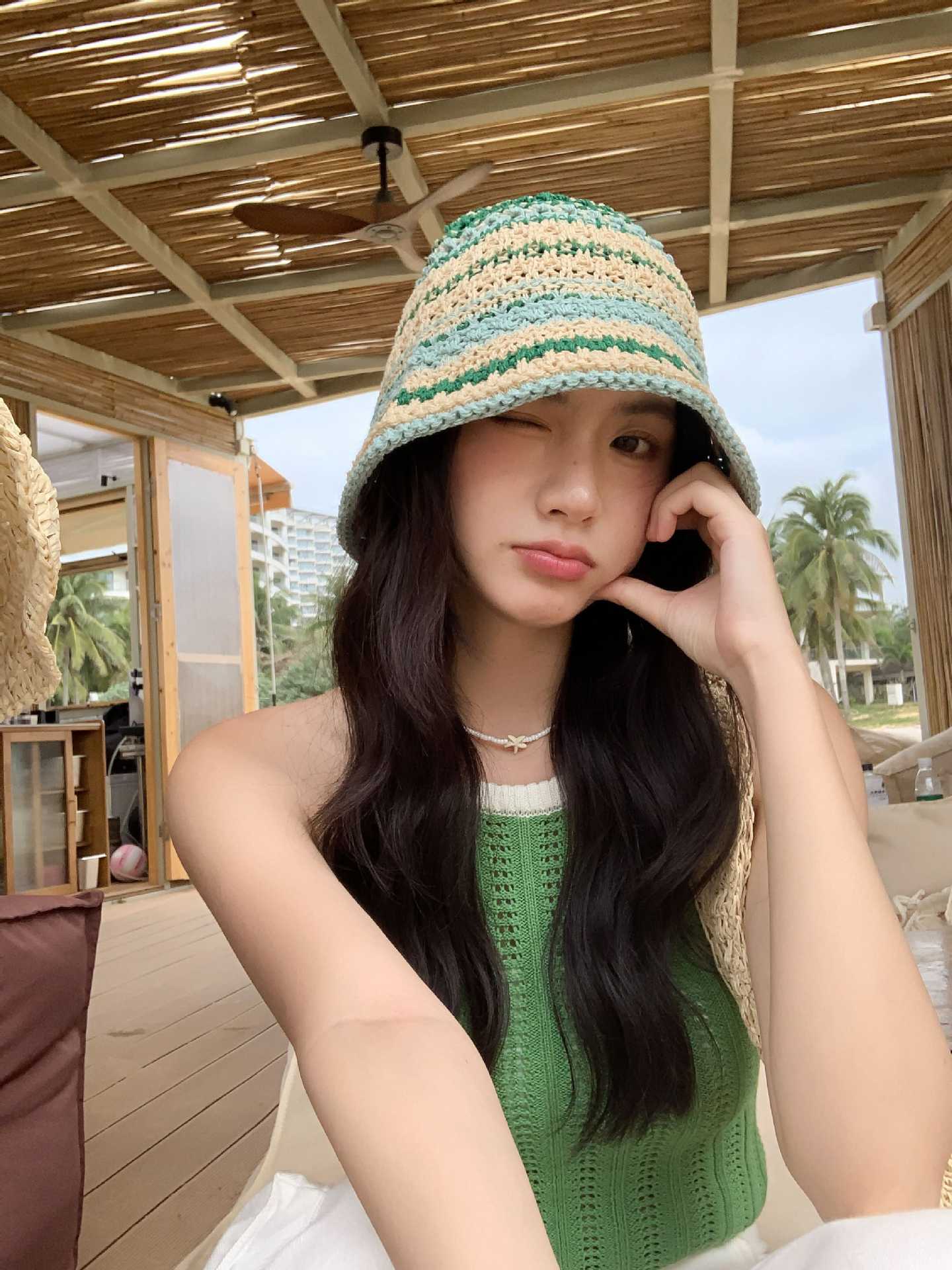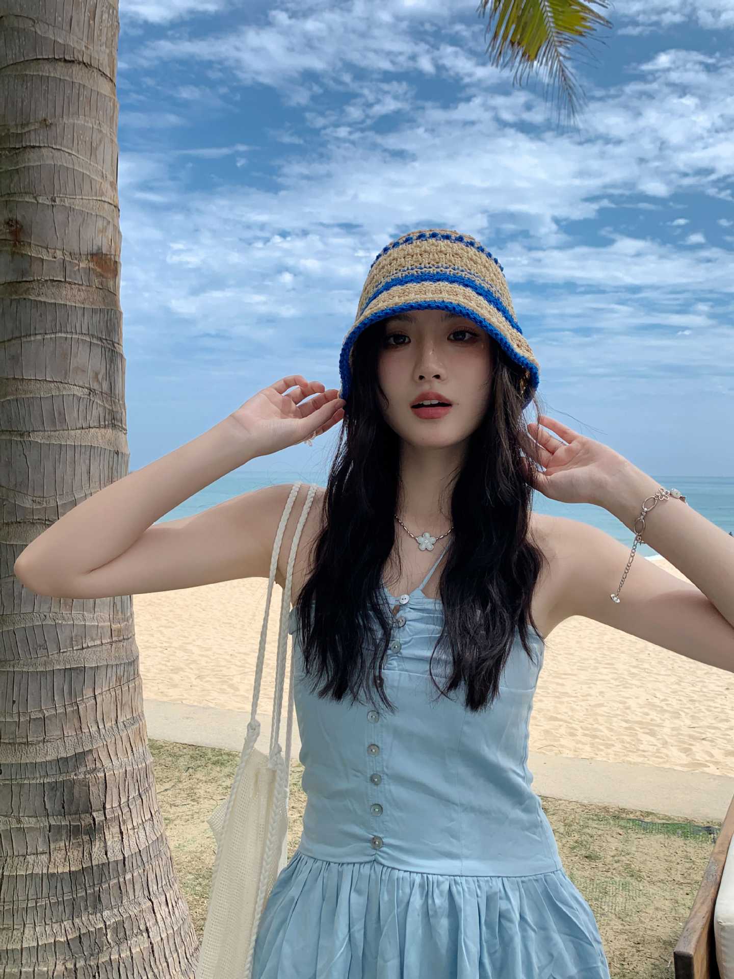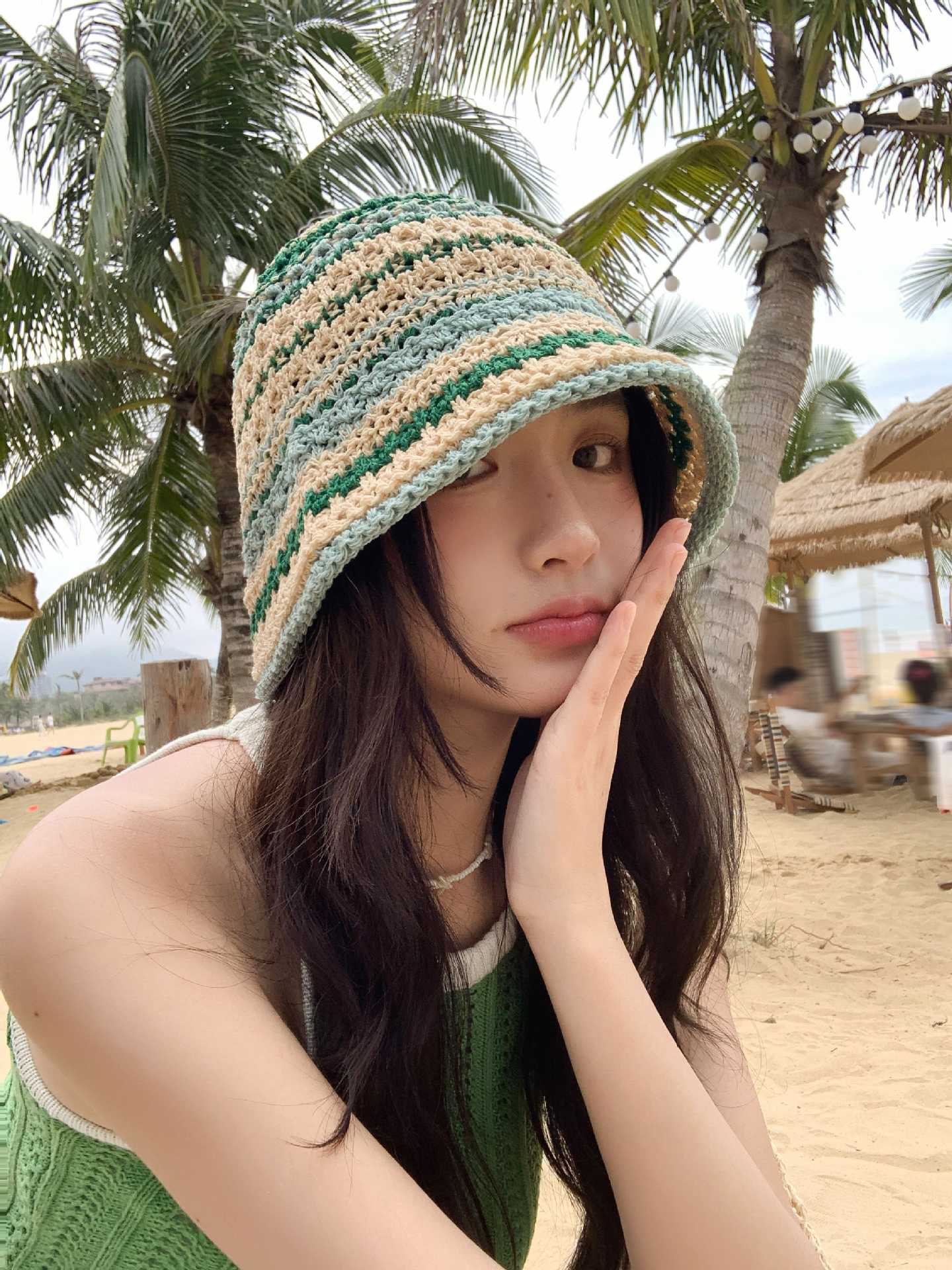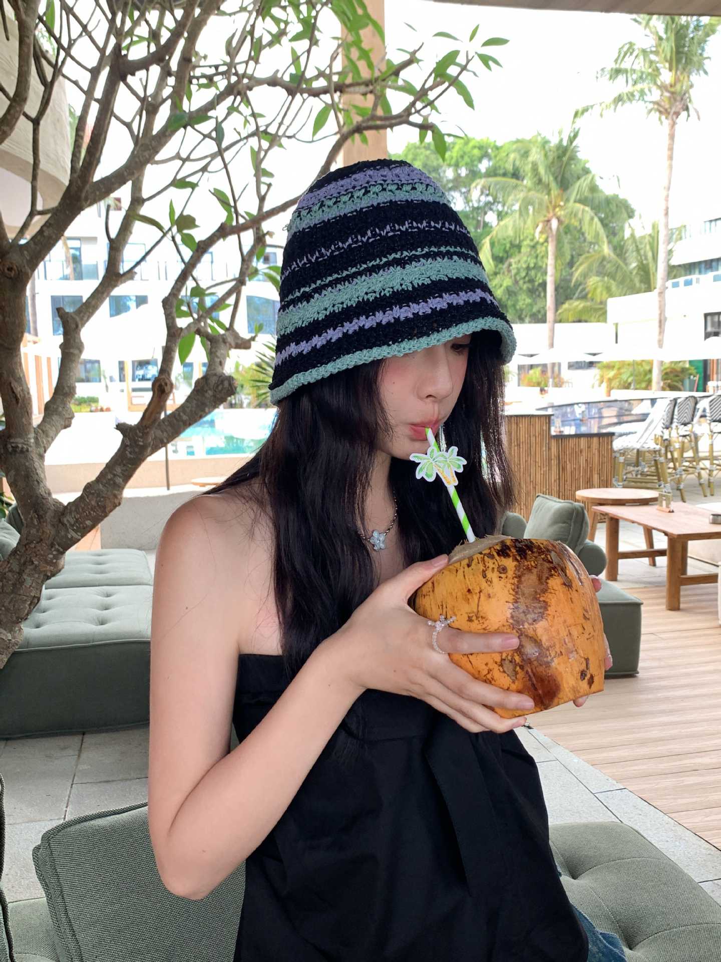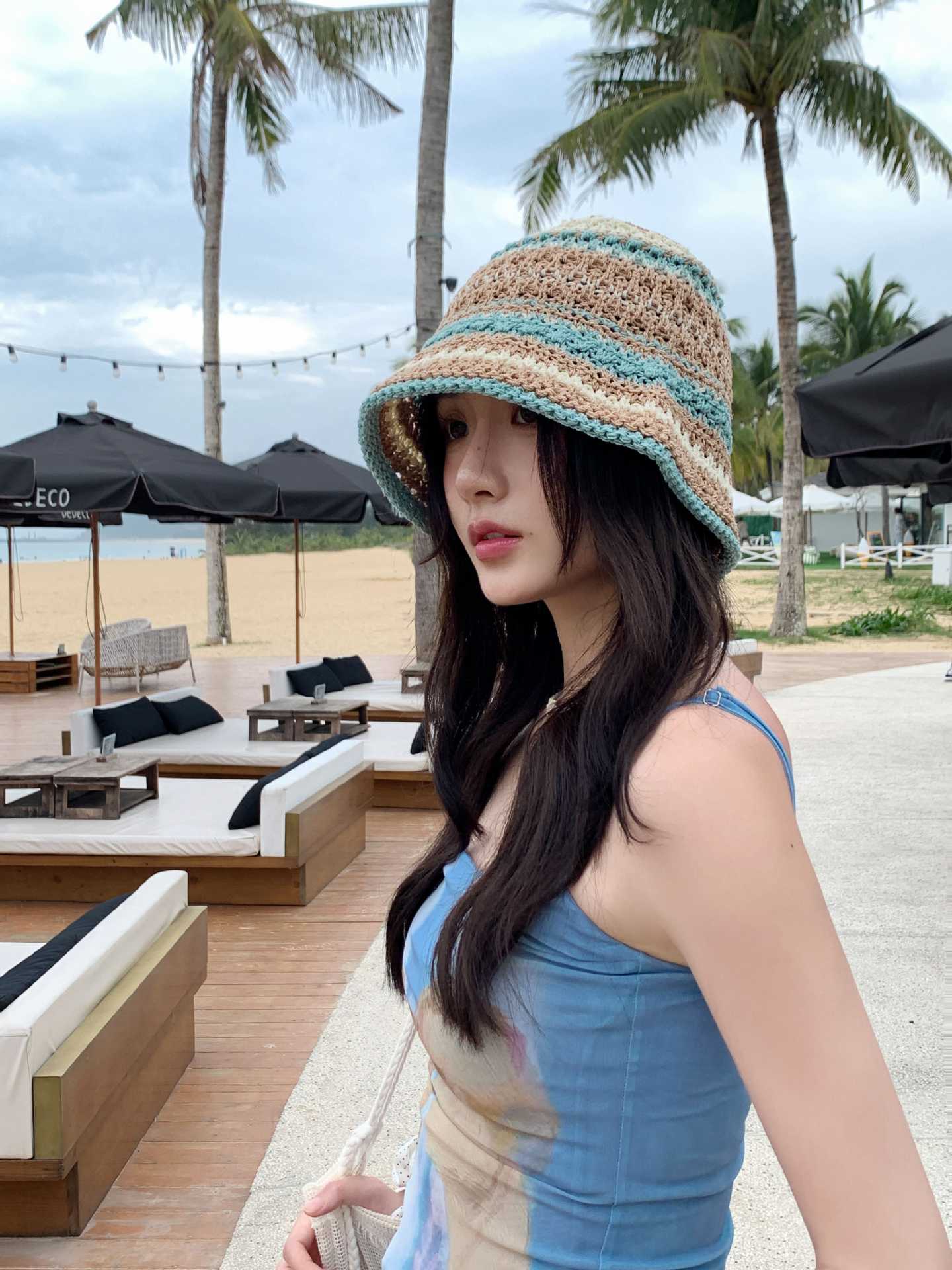 Chapéu de Pescador Listrado Japonês Tecido Infantil Primavera e Verão Que Mostra o Rosto Pequeno Chapéu de Balde Versátil Praia Sombreamento Chapéu de Sol Moderno