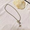Colar de anjinho com pingente de pérola e cristal em forma de T, estilo coreano, corrente de clavícula, doce e estiloso, corrente de pescoço feminina de nicho