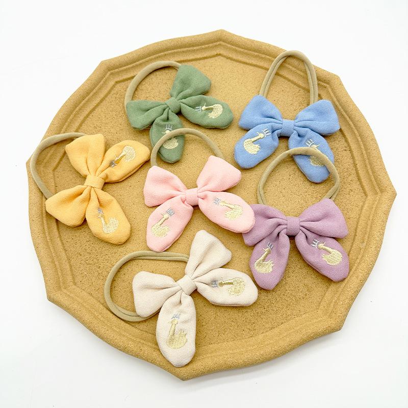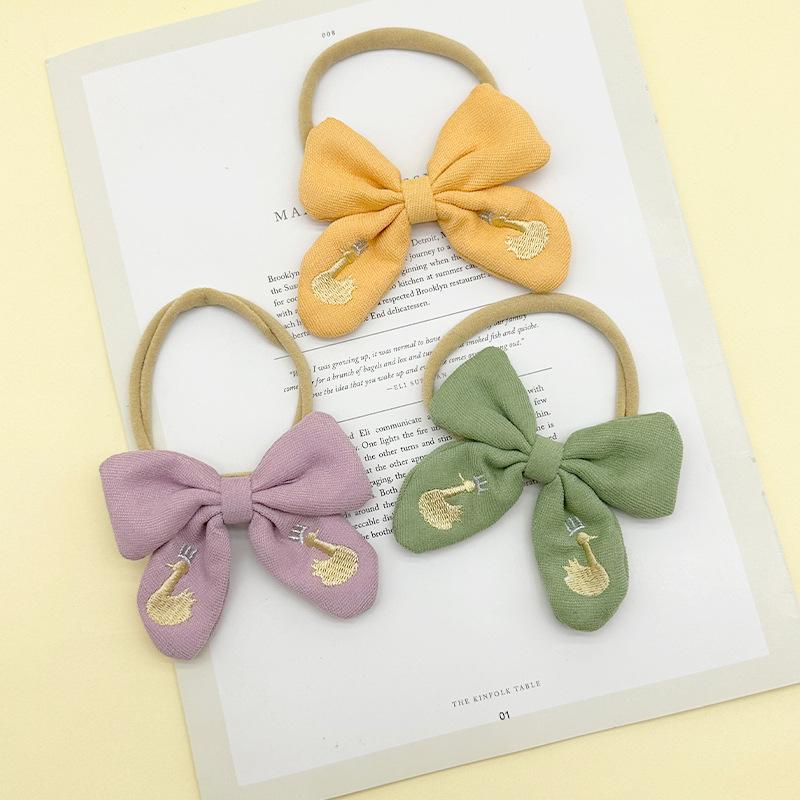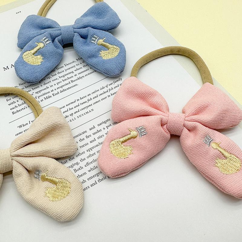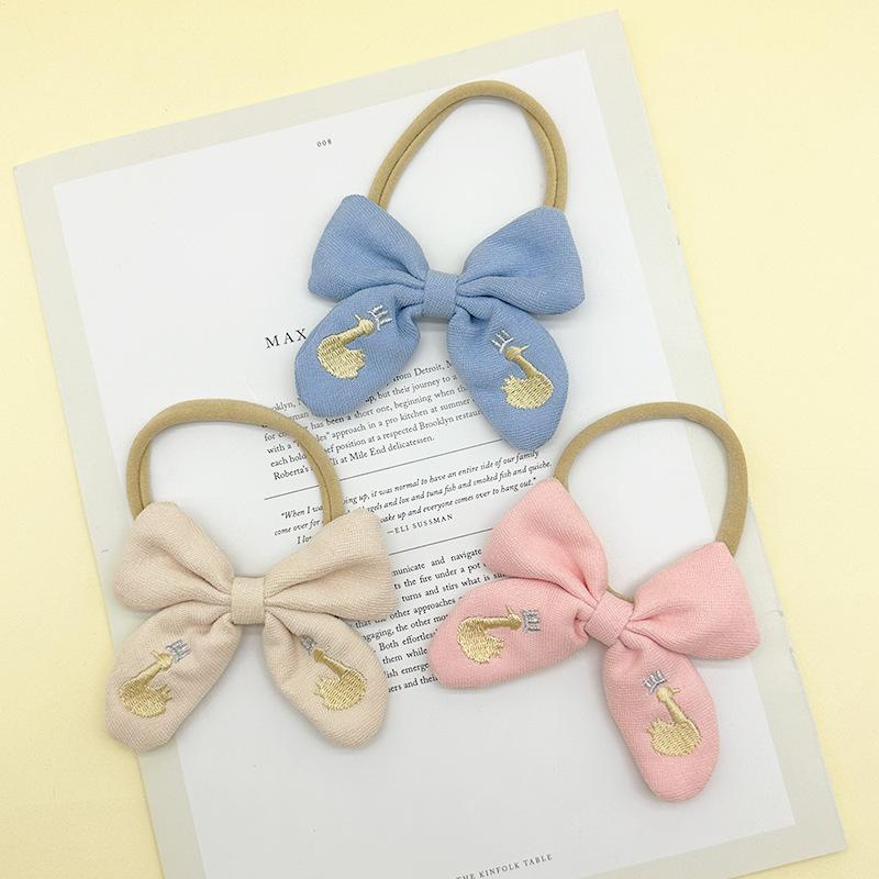 Tiara Laço Bordado Infantil Europeia e Americana Estilo Ins Transfronteiriço Tiara Confortável Princesa Doce Elástico de Cabelo