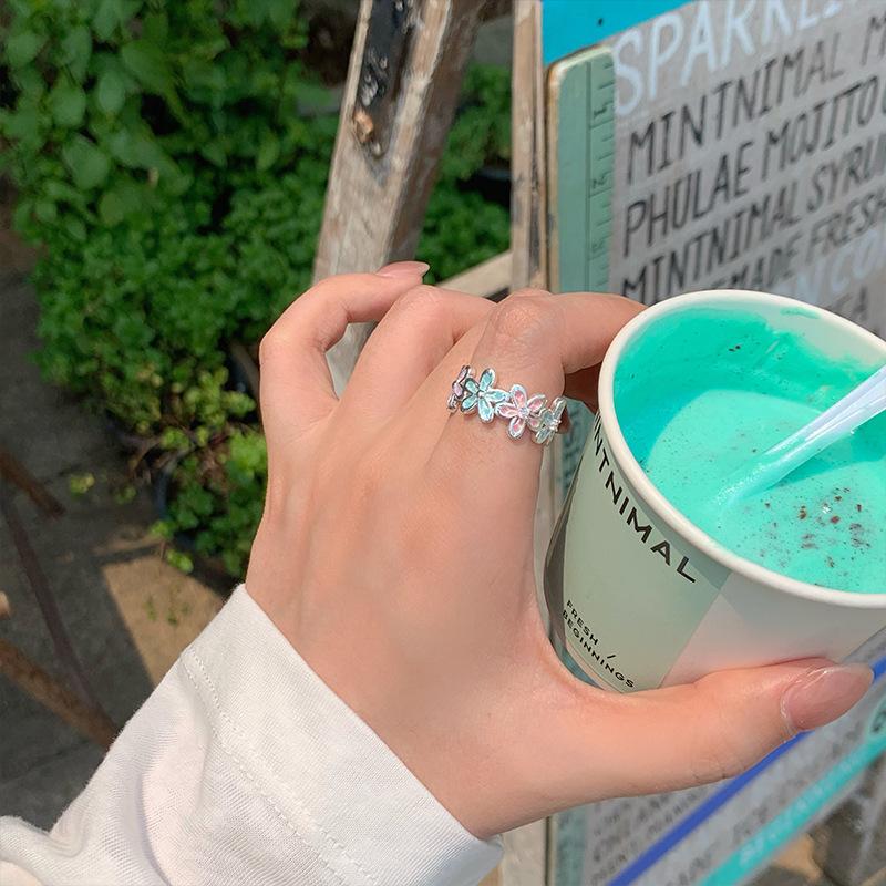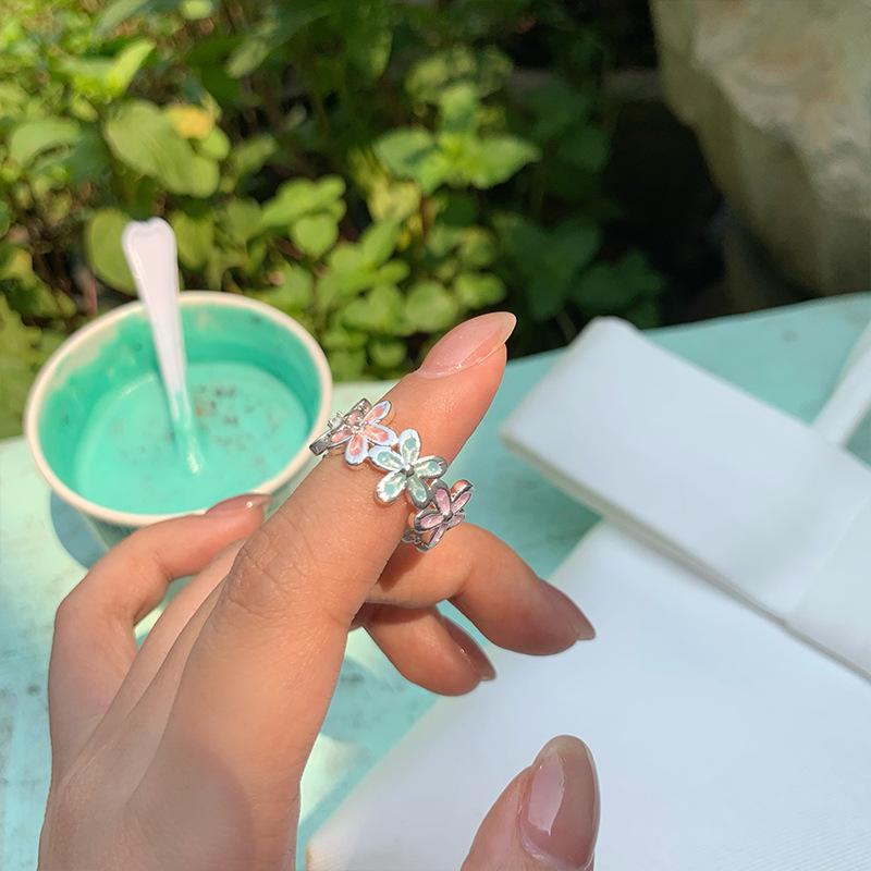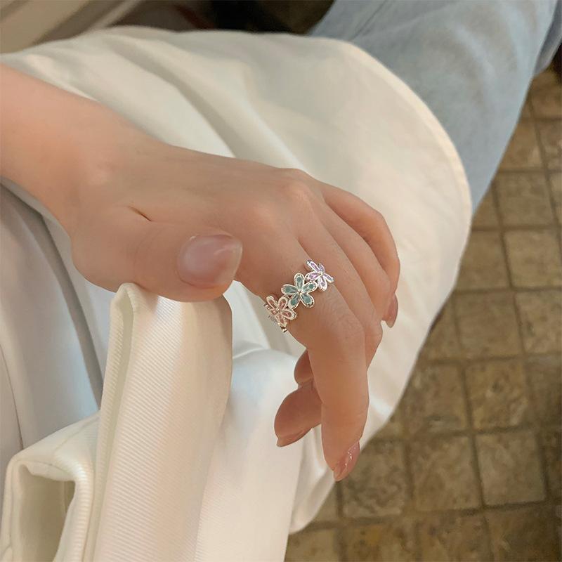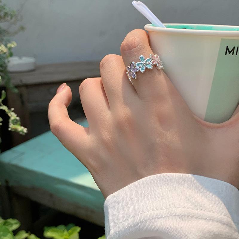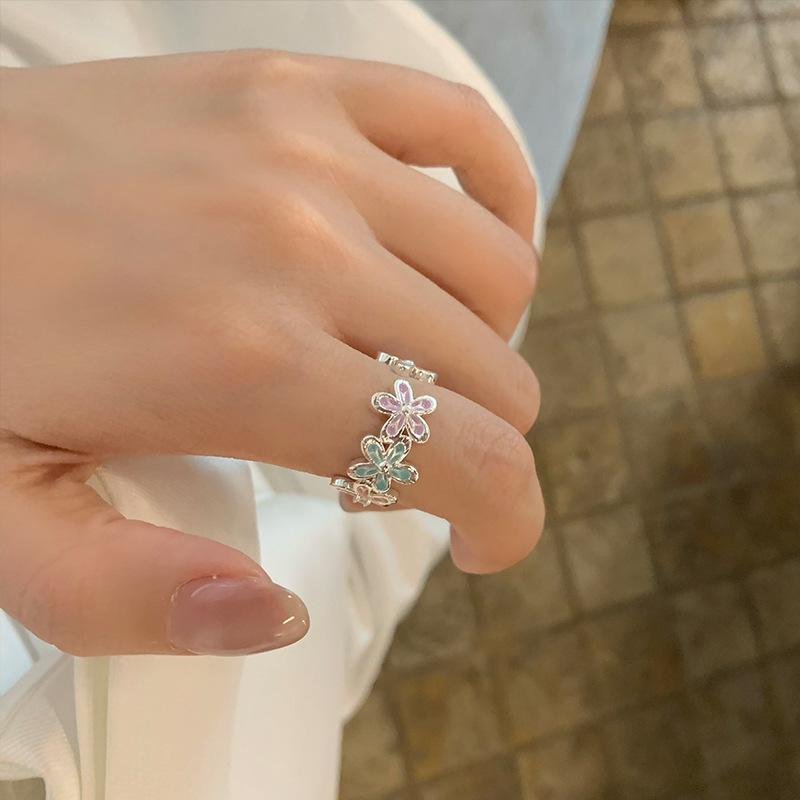 Anel Flor Abrindo Cor Gotejamento de Óleo de Zircônia Pequeno Fresco e Pequeno Anel Exquisito Joias de Nicho da Moda que Combinam com Tudo para Mulheres