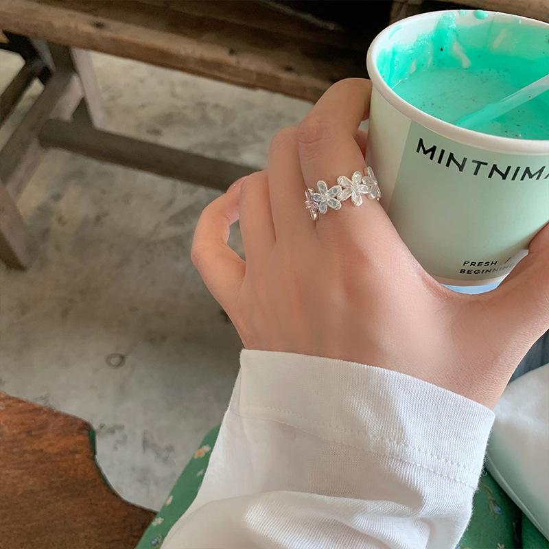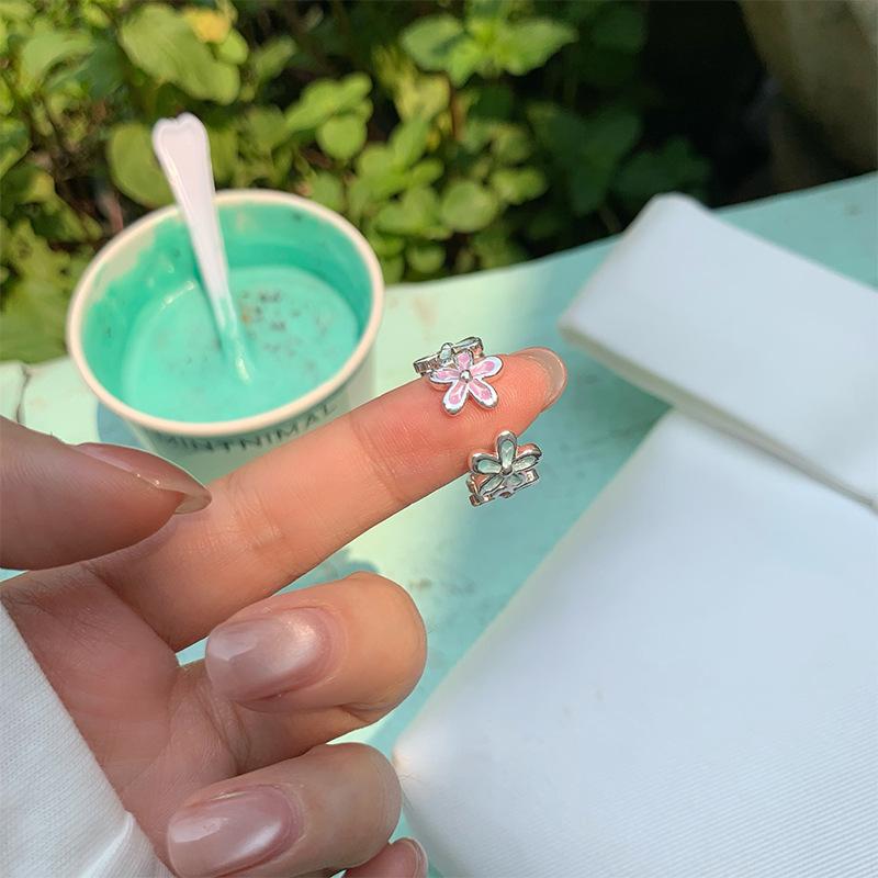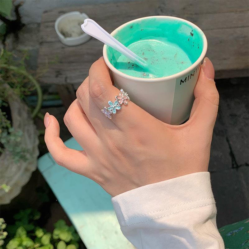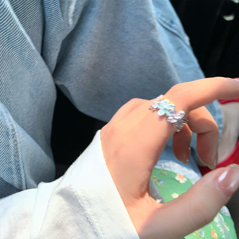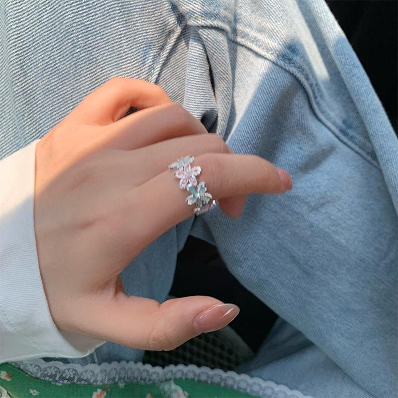Anel Flor Abrindo Cor Gotejamento de Óleo de Zircônia Pequeno Fresco e Pequeno Anel Exquisito Joias de Nicho da Moda que Combinam com Tudo para Mulheres