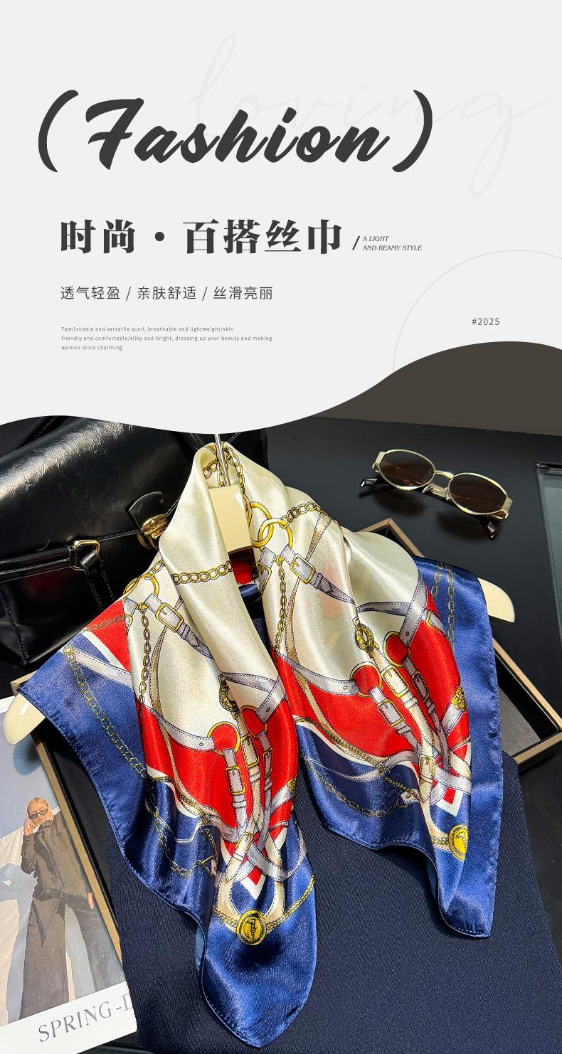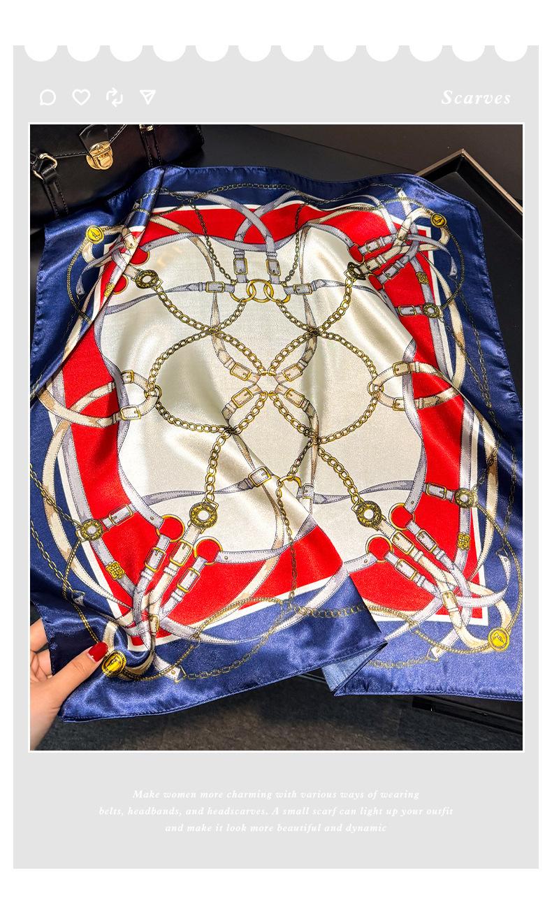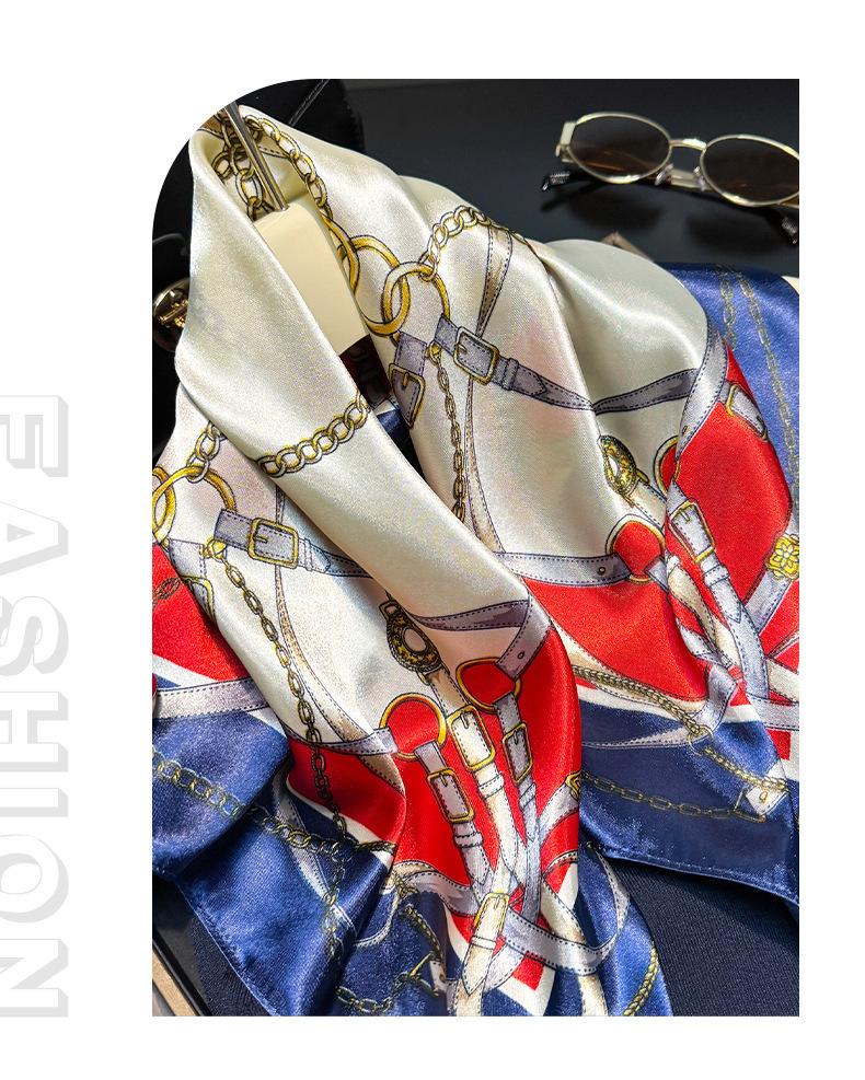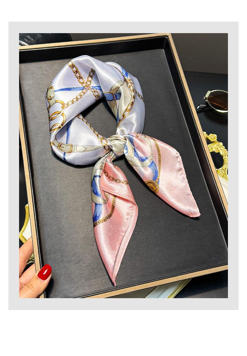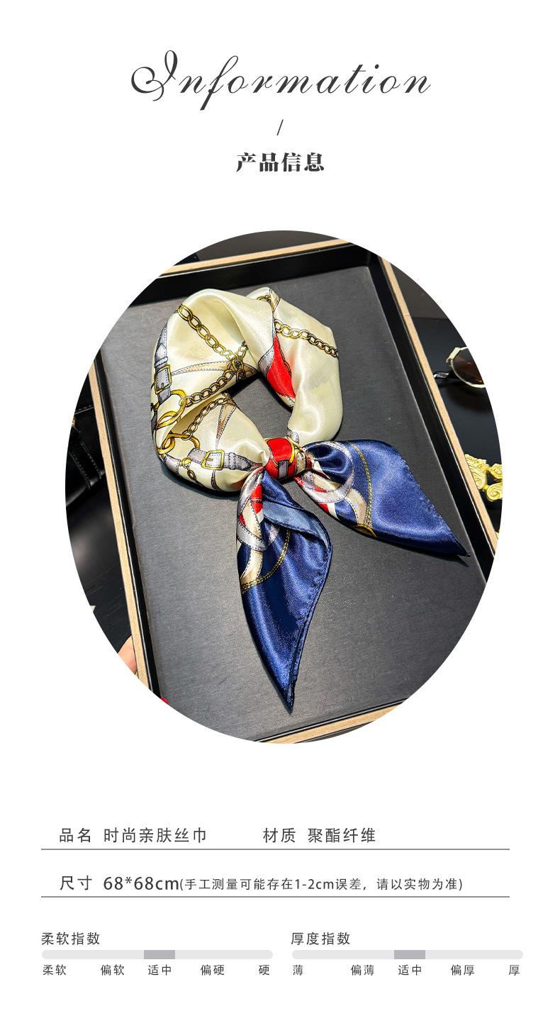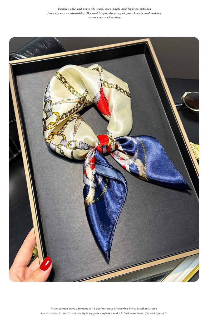 Lenço de Seda com Corrente da Moda para Mulheres, Lenço Decorativo de Alta Qualidade para Primavera e Outono, Novo Lenço de Seda Elegante Decorativo Versátil