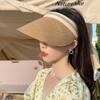 2025 Novo Chapéu de Palha Imitada de Aba Larga Chapéu Feminino de Férias Dobrável Protetor Solar Cobertura de Rosto Faixa de Cabelo Protetor Solar de Peça Única para Todo o Contorno