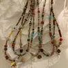 Colar de contas feito à mão vermelho com pedra natural colorida feminino design de nicho senso de moda tudo-combina elegante colar de corrente de clavícula