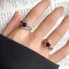 Anel aberto de temperamento de alta qualidade com zircônia vermelha amor, personalidade feminina, design de nicho, luz, luxo, anel de moda simples