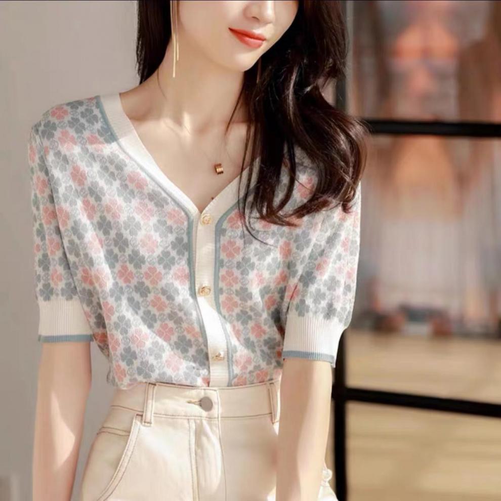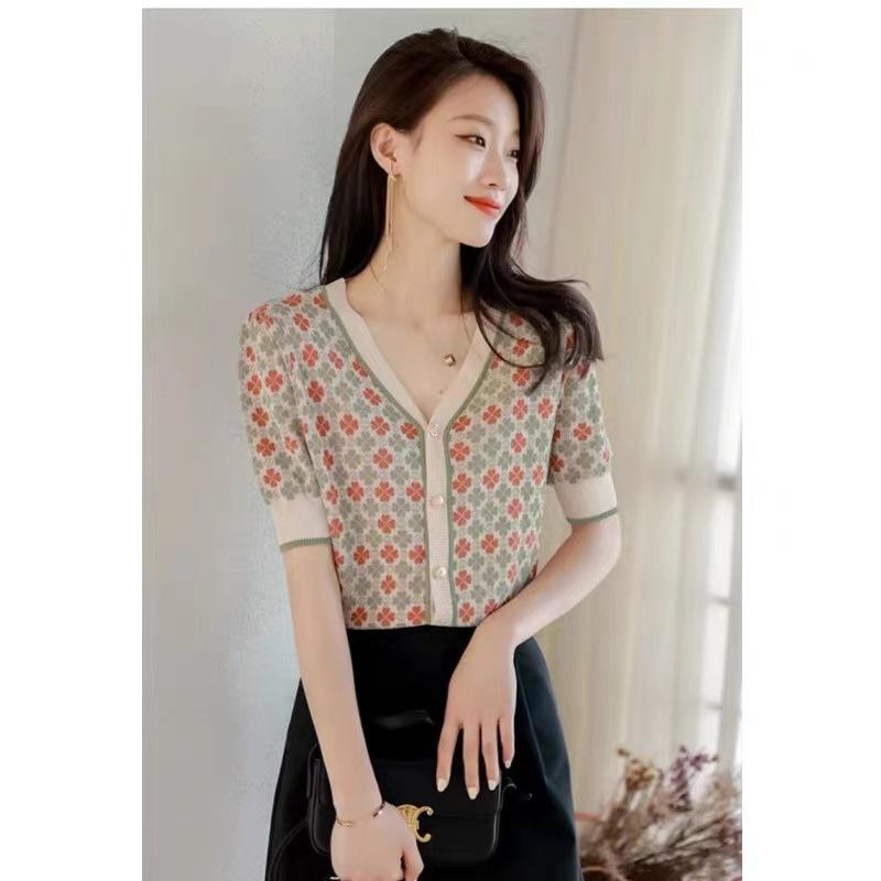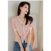 Lingge Retro Suéter Tricotado Jacquard Japonês Cardigã Feminino 2025 Verão Novo Estilo Coreano Solto Manga Média Decote V Top Fino