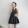 Vestido Chiffon High-End Halterneck para Mulheres Verão Francês Cintura Suave Plissado Saia Fada Elegante Sem Mangas Saia Bainha Larga