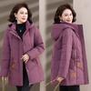 Jaqueta de algodão acolchoada de inverno para mulheres de meia-idade e idosas, comprimento médio, estilo estrangeiro, plus size, casaco grosso, mãe de 50 anos, casaco grosso de algodão acolchoado solto