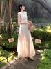 Vestido longo branco sem mangas na cintura 2025 verão novo vestido francês de alta qualidade elegante leve vestido de luxo roupas femininas